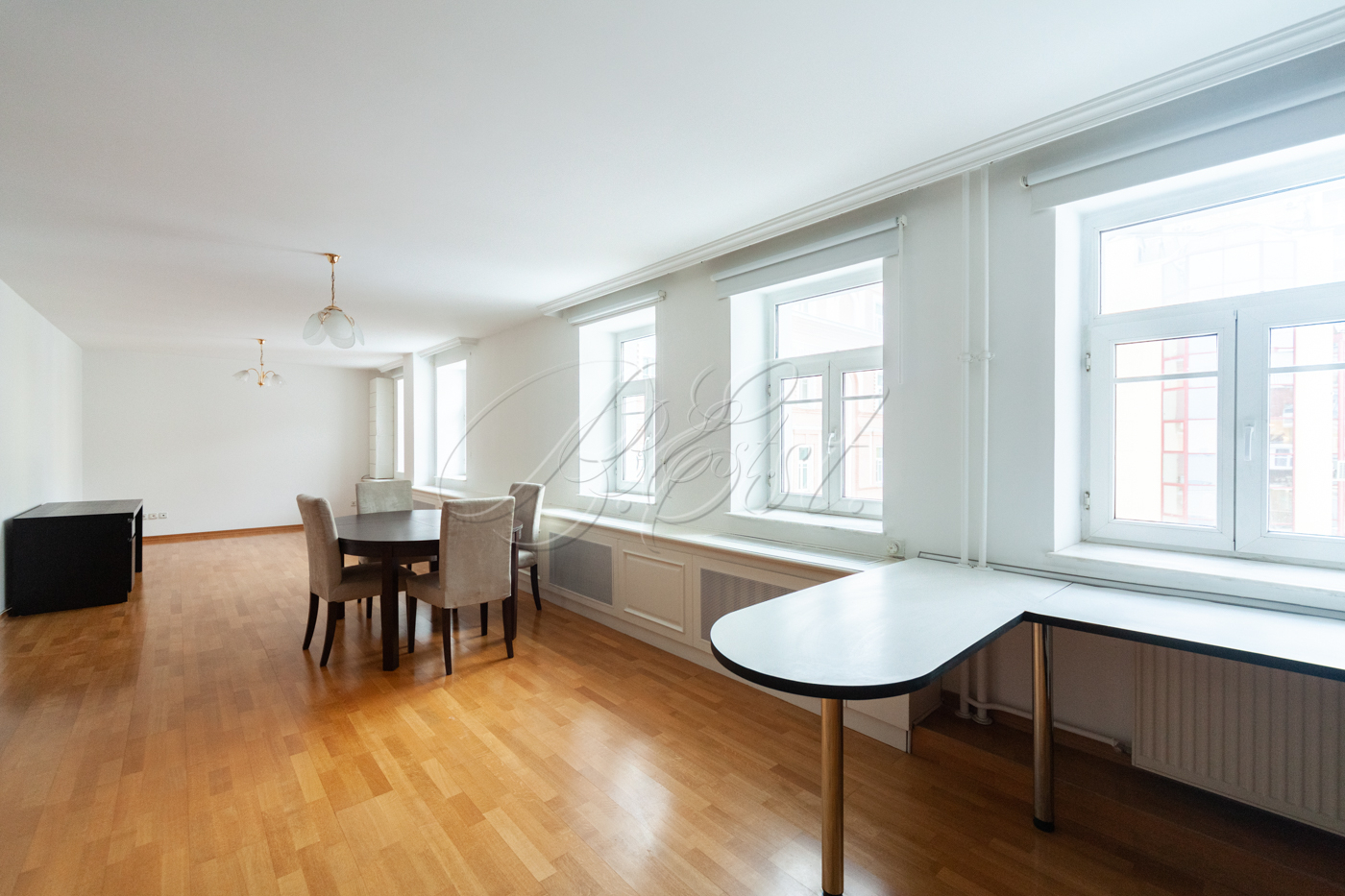 Объект 22336. Предлагается в аренду просторная 4-х комнатная квартира в ЖК "Сретенка комплекс" - особняке в Последнем переулке. Планировочное решение: гостиная, совмещенная с кухней, оборудованной всей необходимой мебелью и бытовой техникой, 3 спальни, две из которых с своей ванной комнатой, гостевой санузел, прихожая.