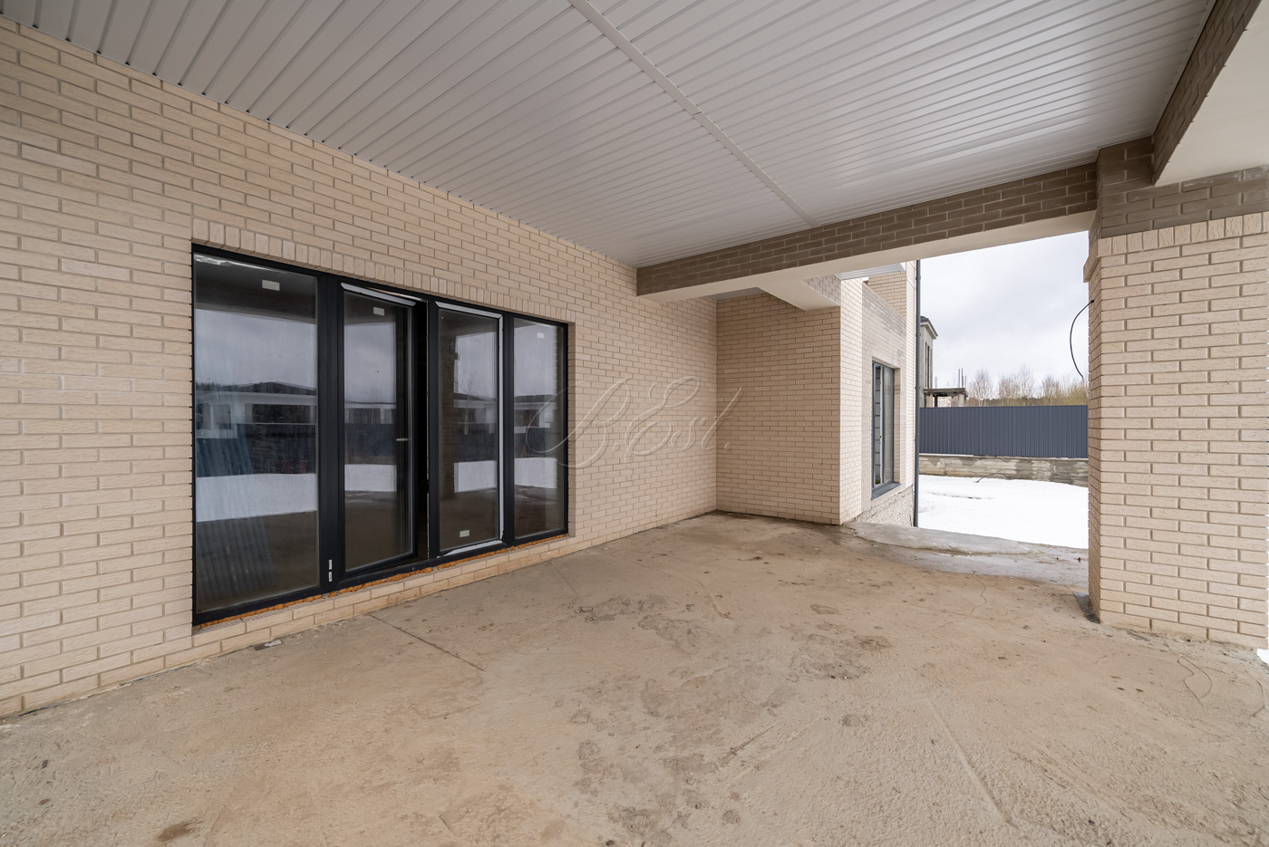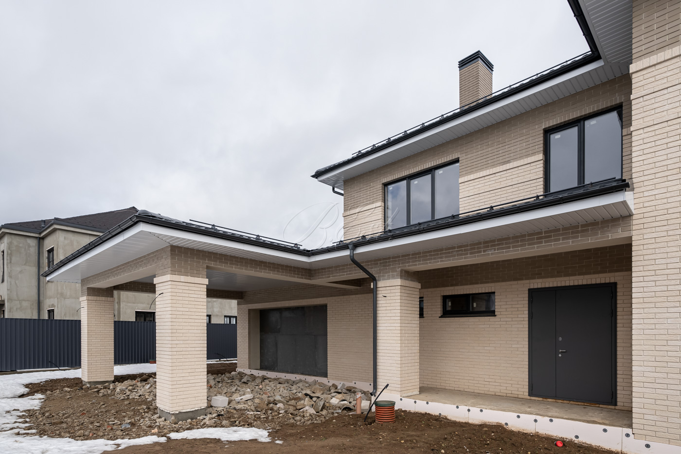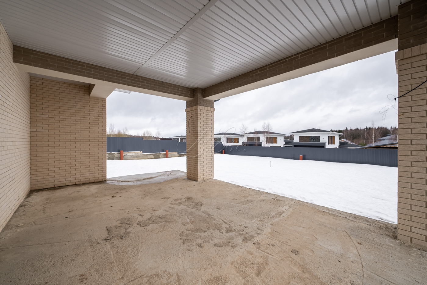 Планировка дома: 0 этаж - подвал 35 кв.м; 1 этаж - гостиная с выходом на крытую террасу, кухня-столовая, просторная прихожая, гостевая ванная комната, хозблок, гараж на 2 машины + крытая парковка на 2 авто; 2 этаж - 4 спальни (одна с балконом), 2 ванные комнаты, гардеробная.