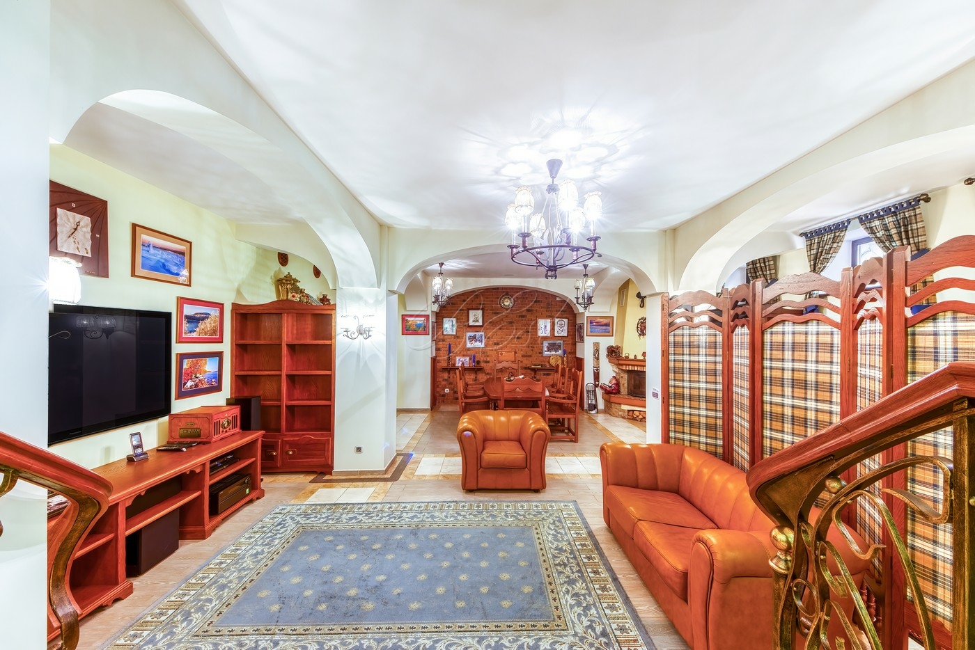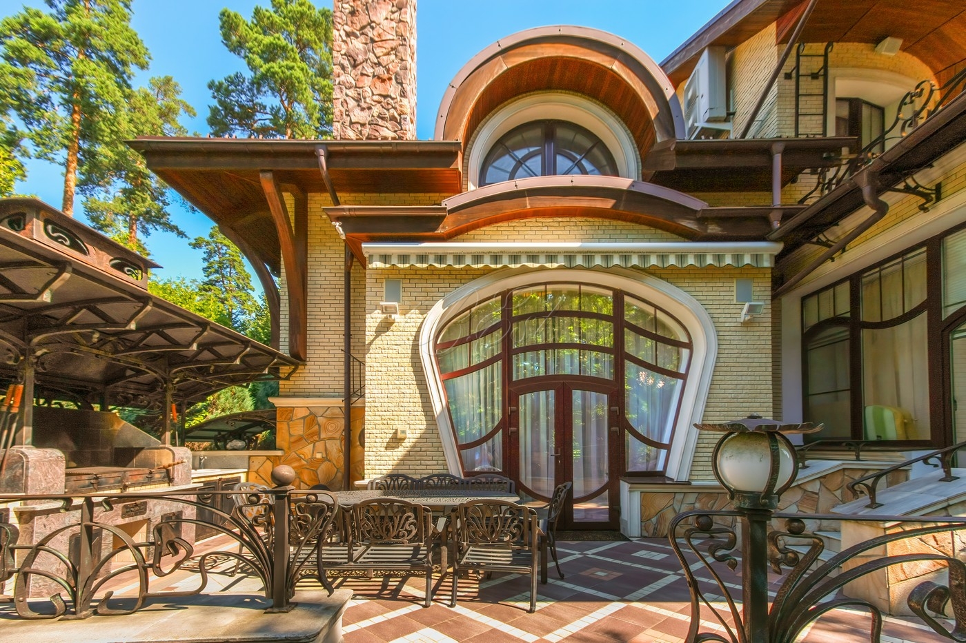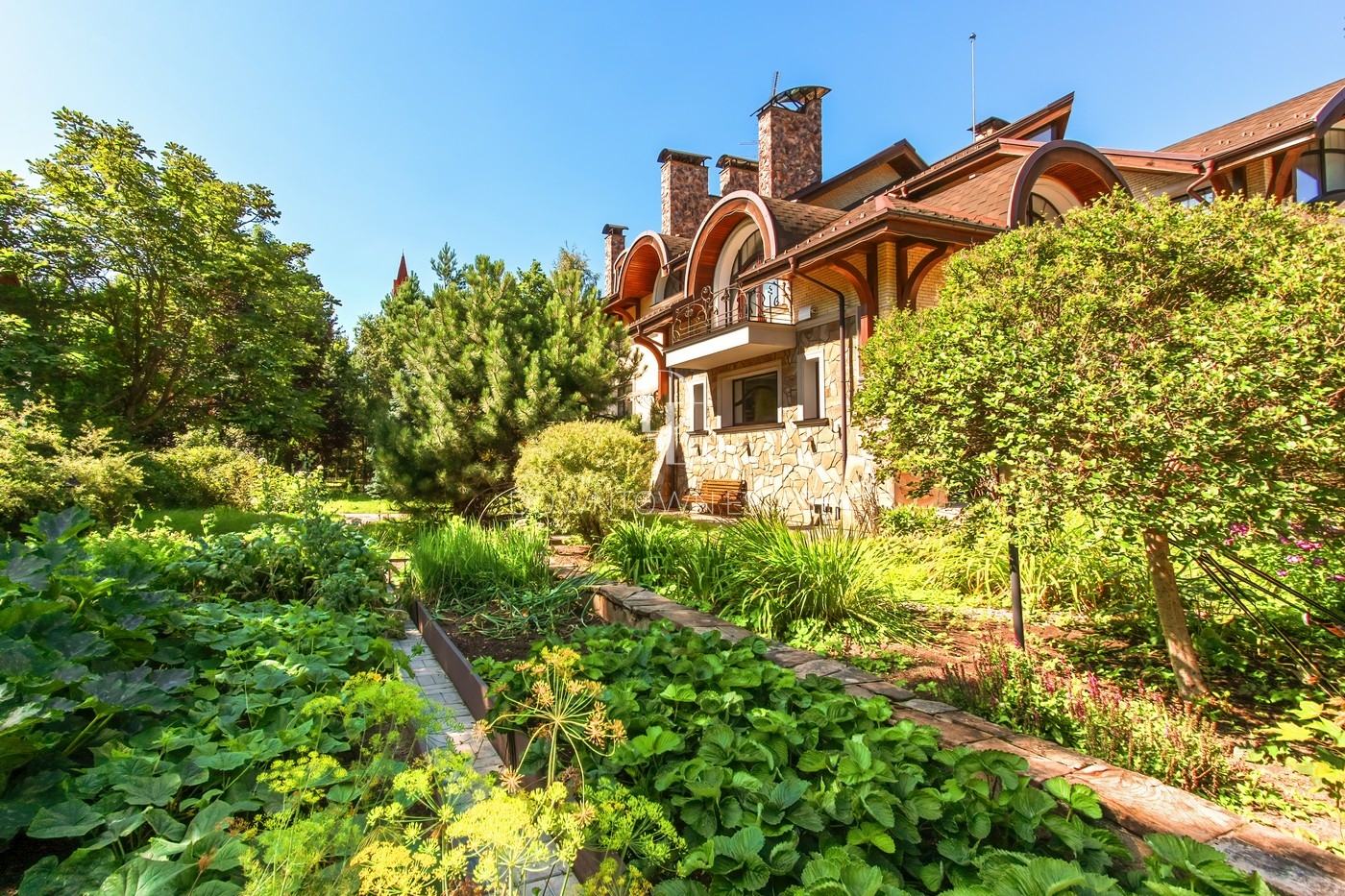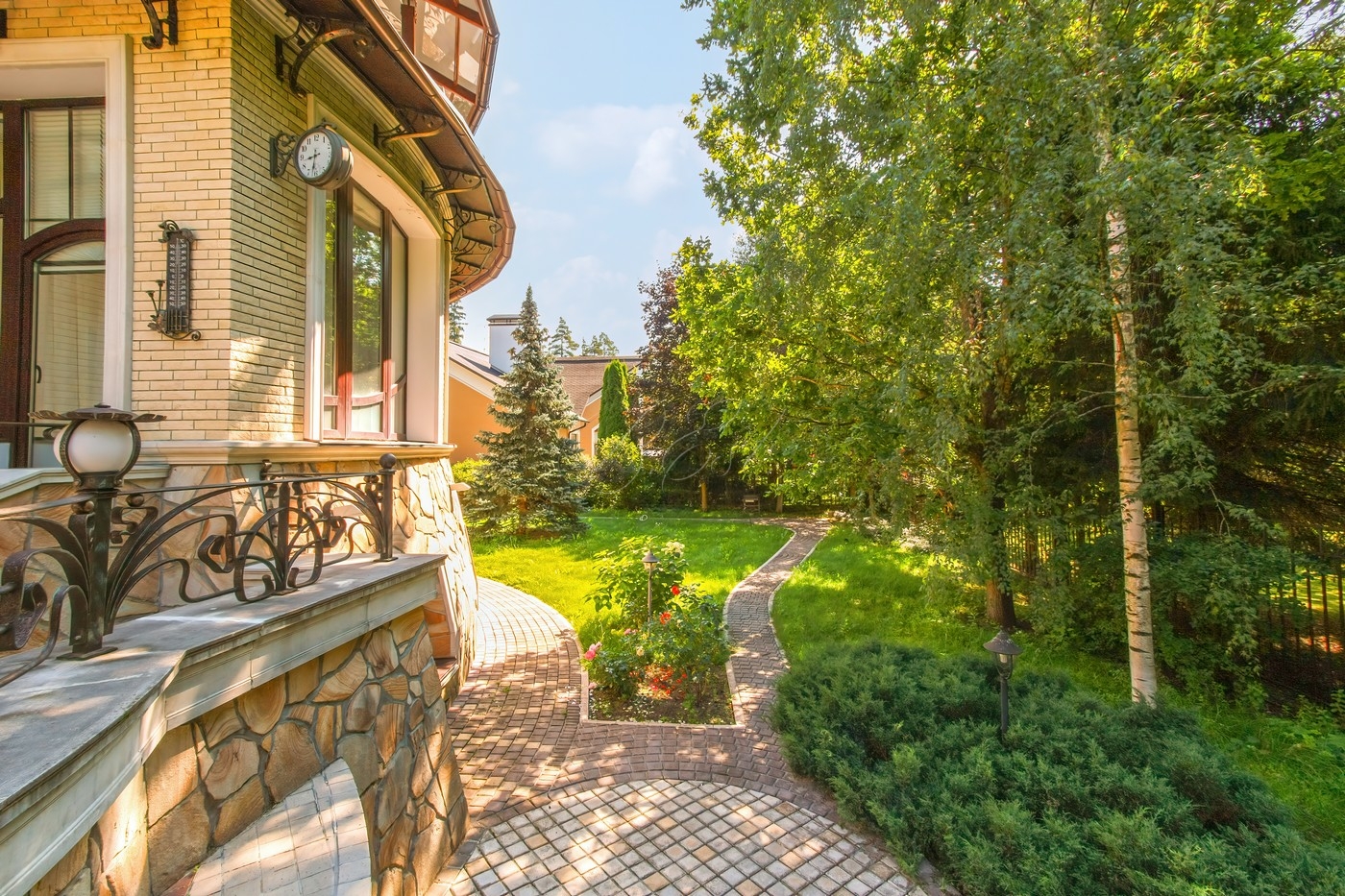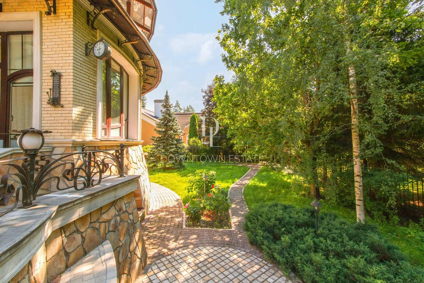 Объект 25026. Продается дом в коттеджном поселке "Лесные Дали-3" с выходом в пансионат "Лесные Дали" управ. делами. Великолепный кирпичный дом с элементами стиля модерн, в прекрасном состоянии. Внутри - высокие потолки и дорогая мебель из Европы. Удобная планировка первого этажа предусматривает просторную гостиную с живописным летним патио и лежаками, смотрящими на хвойный лес, кухню, столовую, гостевой санузел, гардеробную и гараж на 2 авто. На втором этаже большая мастер-спальня с собственной гардеробной и просторным санузлом, большой балкон с видом на хвойный лес, 2 детские спальни со своими гардеробными и санузлами, а также кабинет-библиотека. В цоколе располагается SPA-зона с сауной, джакузи и комнатой отдыха, квартира для персонала с собственными кухней и санузлом.