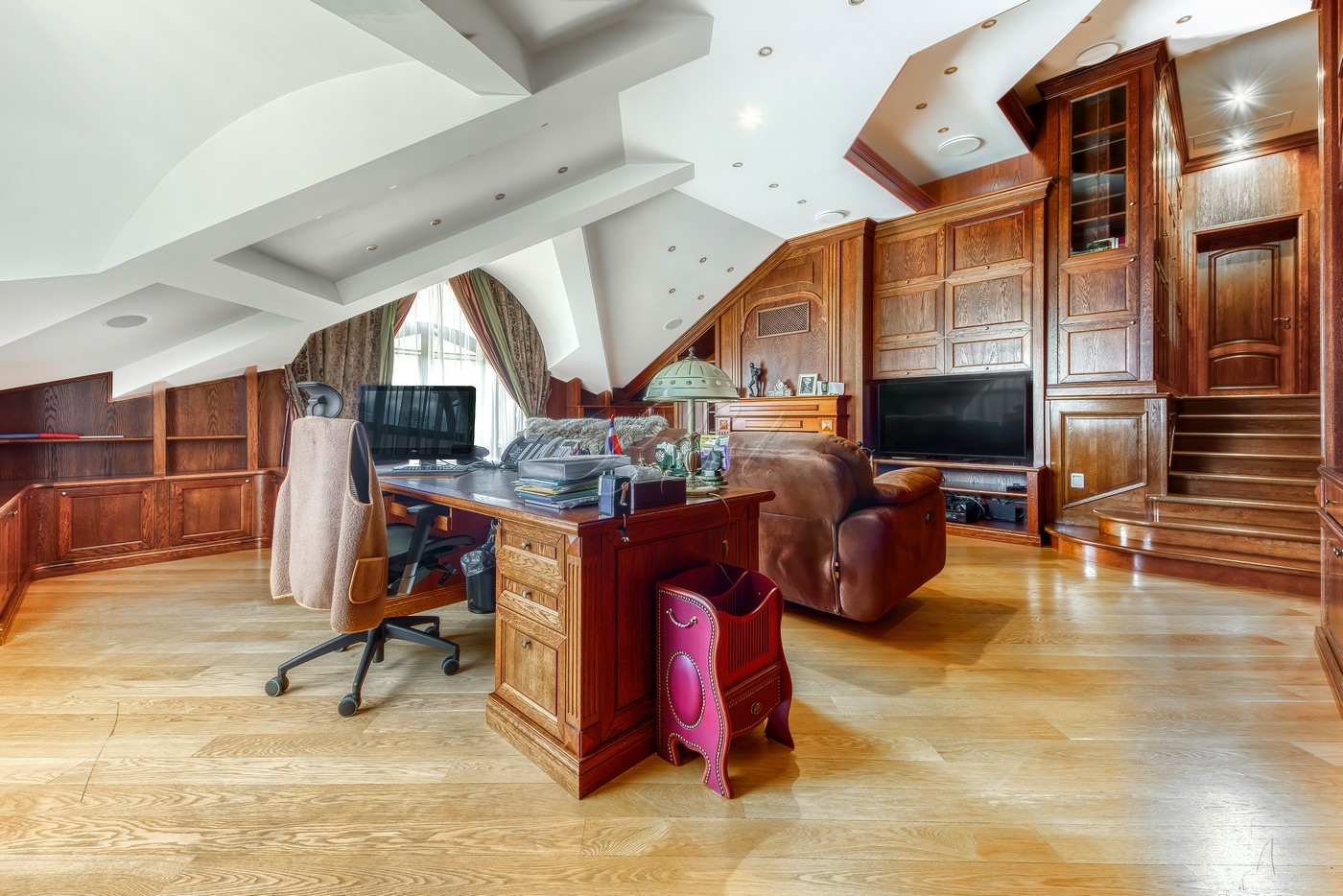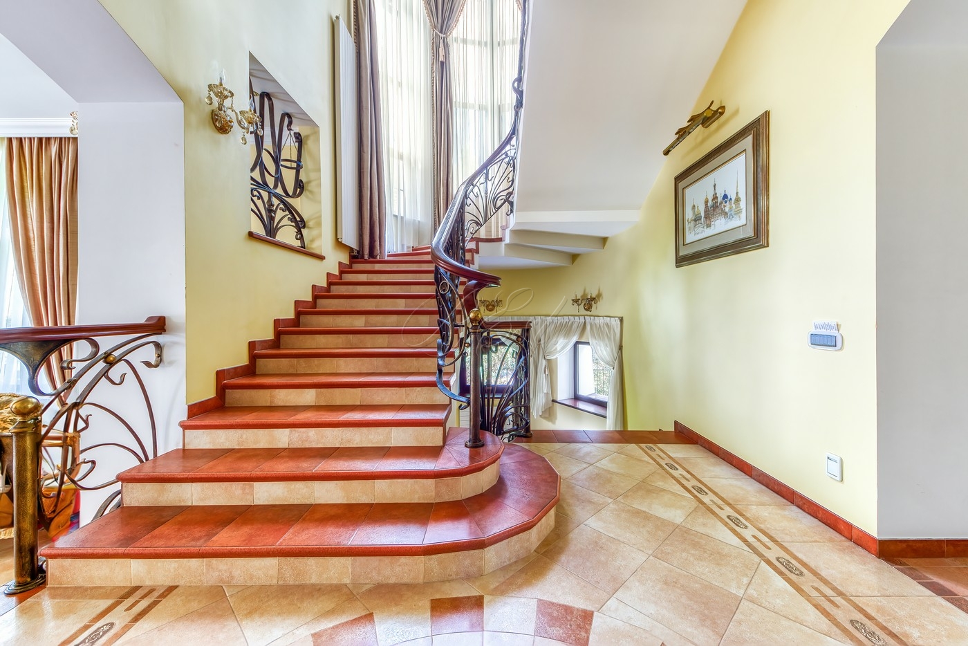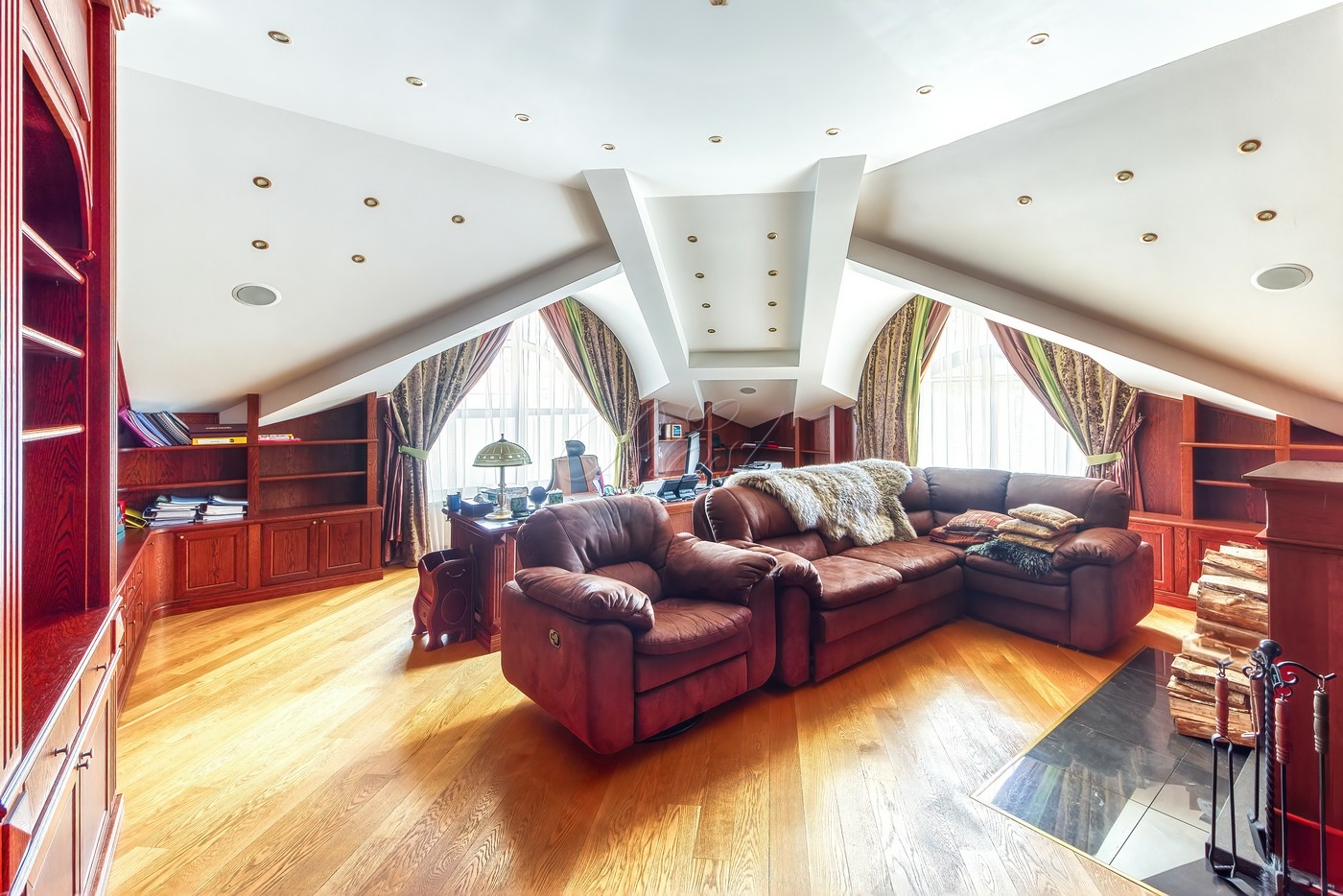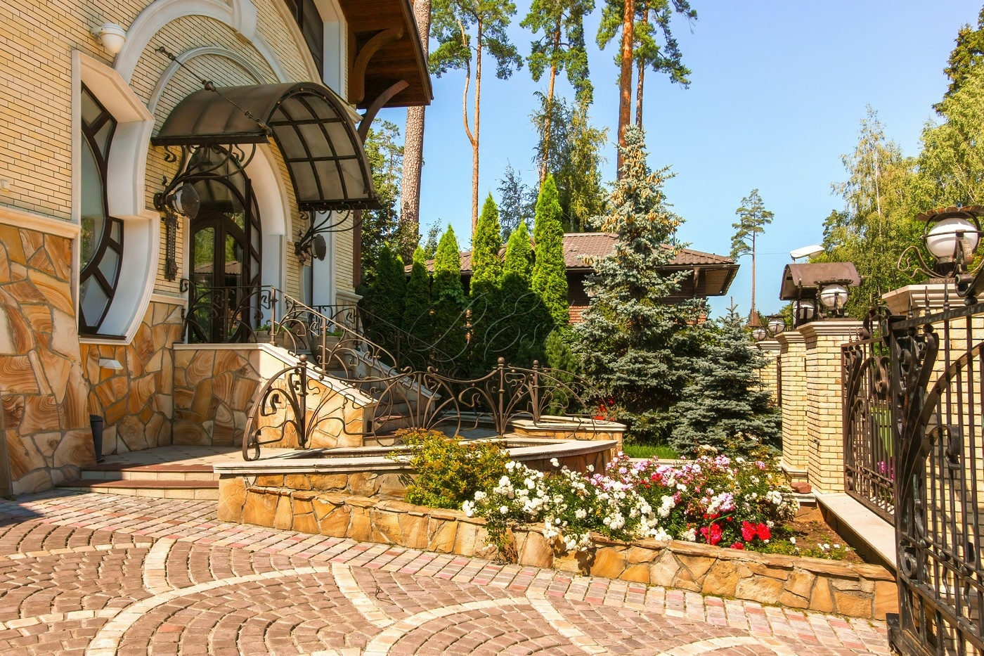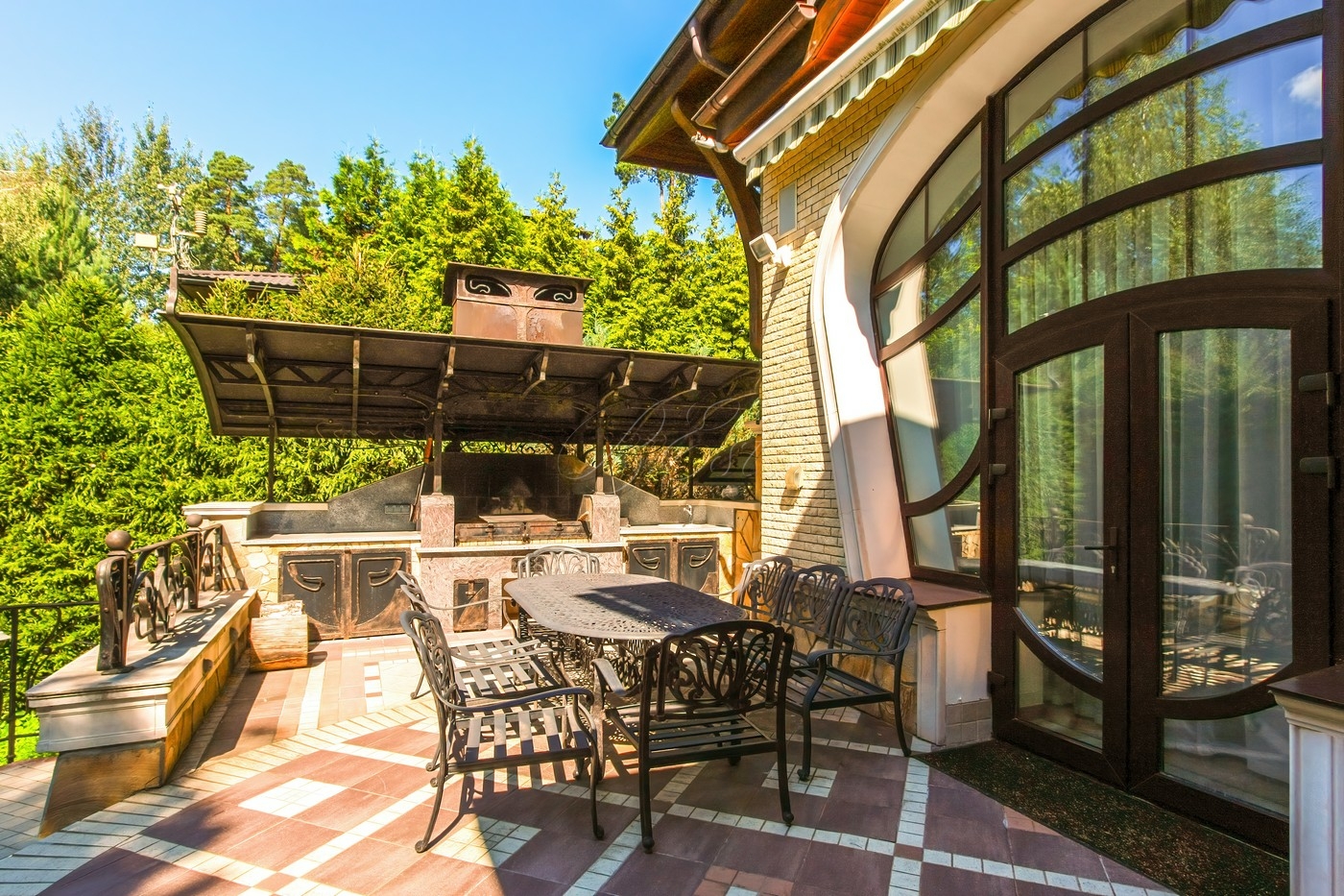 Объект 25026. Продается дом в коттеджном поселке "Лесные Дали-3" с выходом в пансионат "Лесные Дали" управ. делами. Великолепный кирпичный дом с элементами стиля модерн, в прекрасном состоянии. Внутри - высокие потолки и дорогая мебель из Европы. Удобная планировка первого этажа предусматривает просторную гостиную с живописным летним патио и лежаками, смотрящими на хвойный лес, кухню, столовую, гостевой санузел, гардеробную и гараж на 2 авто. На втором этаже большая мастер-спальня с собственной гардеробной и просторным санузлом, большой балкон с видом на хвойный лес, 2 детские спальни со своими гардеробными и санузлами, а также кабинет-библиотека. В цоколе располагается SPA-зона с сауной, джакузи и комнатой отдыха, квартира для персонала с собственными кухней и санузлом.