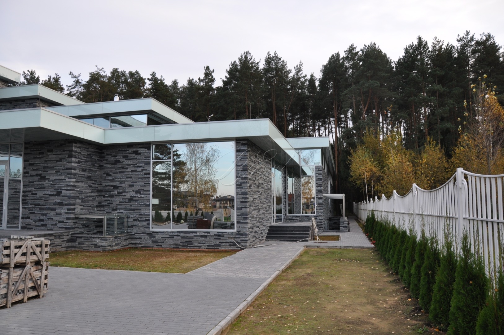 Объект 24609. Великолепный дом, выполненный по проекту европейского архитектора в КП "Резиденции Бенилюкс". На сегодня в стадии отделки white box (сделана сантехника, электрика, вентиляция, отопление, на полах финальные стяжки, стены выровнены, побелены, готовы под финальную покраску). Все, что Вам нужно сделать - просто подобрать краску для стен, материал для паркетка и плитку для санузлов и бассейна. Полгода на финальный ремонт - и в дом можно заезжать. Новых владельцев ждет 6 спален, каждая из которых со своим санузлом и гардеробной, большой бассейн (20 метров) с элегантной SPA-зоной, квартира для персонала с двумя спальнями, кухней, отдельным входом с улицы, гараж, живописные балконы и большая эксплуатируемая кровля с автоматической очисткой от снега. Особого внимание заслуживает участок: он покрыт вековыми соснами, площадь почти 50 соток. С балконов открываются роскошные виды на прогулочные поля и озеро - одно из самых привлекательных мест в поселке (Вы не видите соседей!).