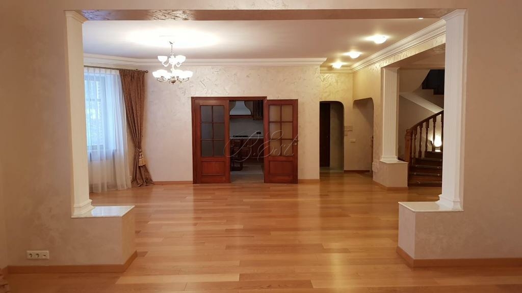 Объект 24318. Продается дом в строго охраняемом поселке "Фонд Развития Международного Университета" на Сколковском шоссе. Дом построен из кирпича, большие комнаты, высокие потолки. В доме: цоколь - тренажерный зал, постирочная, кладовая, холл, сауна, душевая, с/у, большая гардеробная, котельная; 1 этаж - холл, гостиная с камином, столовая, кухня, с/у, спальня; 2 этаж - 4 спальни, 3 с/у, гардеробная, холл с выходом на балкон и террасу. На участке в 28 соток выполнен ландшафтный дизайн, проложены дорожки, есть зона барбекю, беседка и гараж на 2 авто с квартирой для персонала. Все коммуникации центральные. По всем вопросам - звоните, также расскажу про поселок и инфраструктуру.