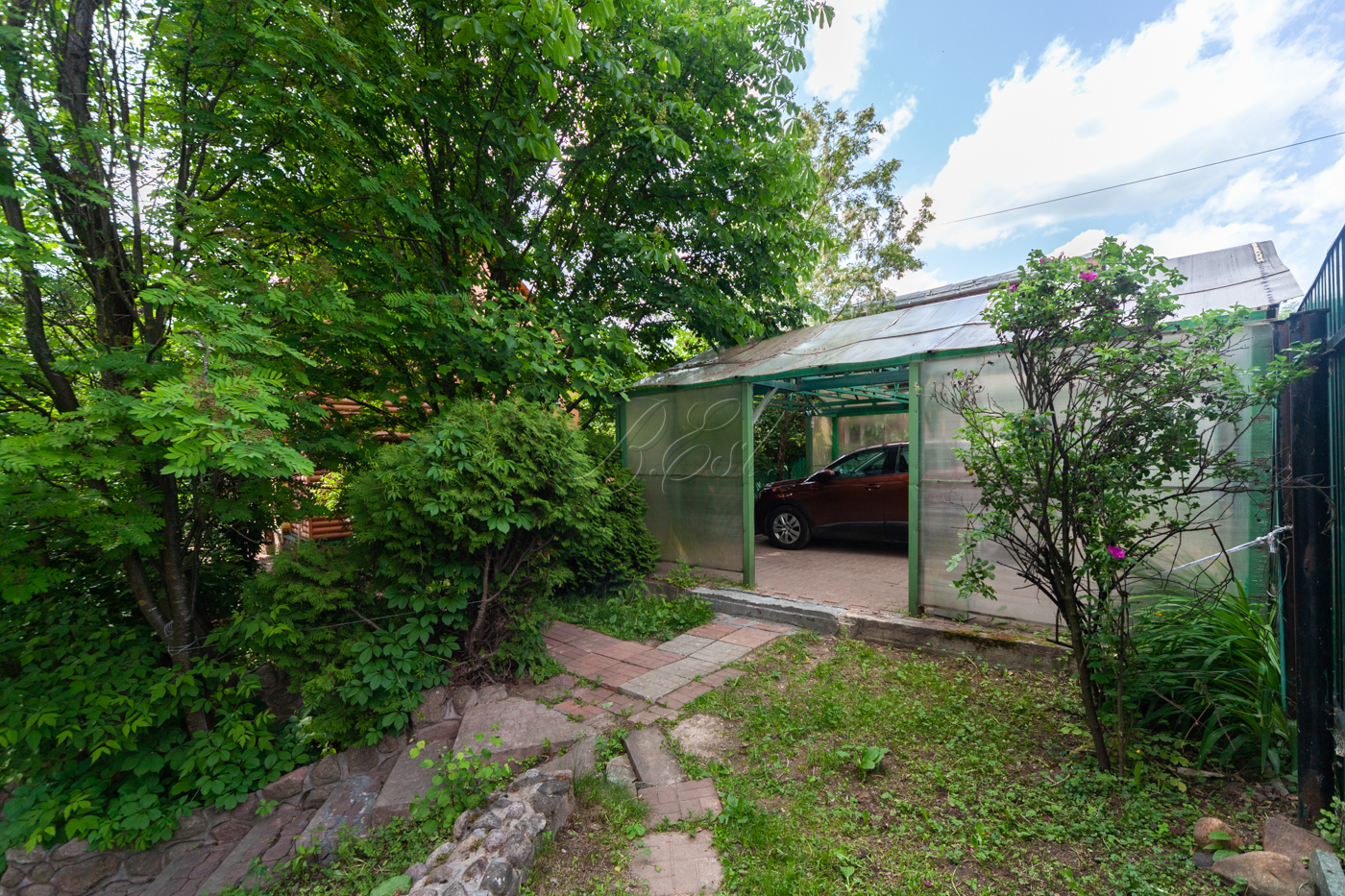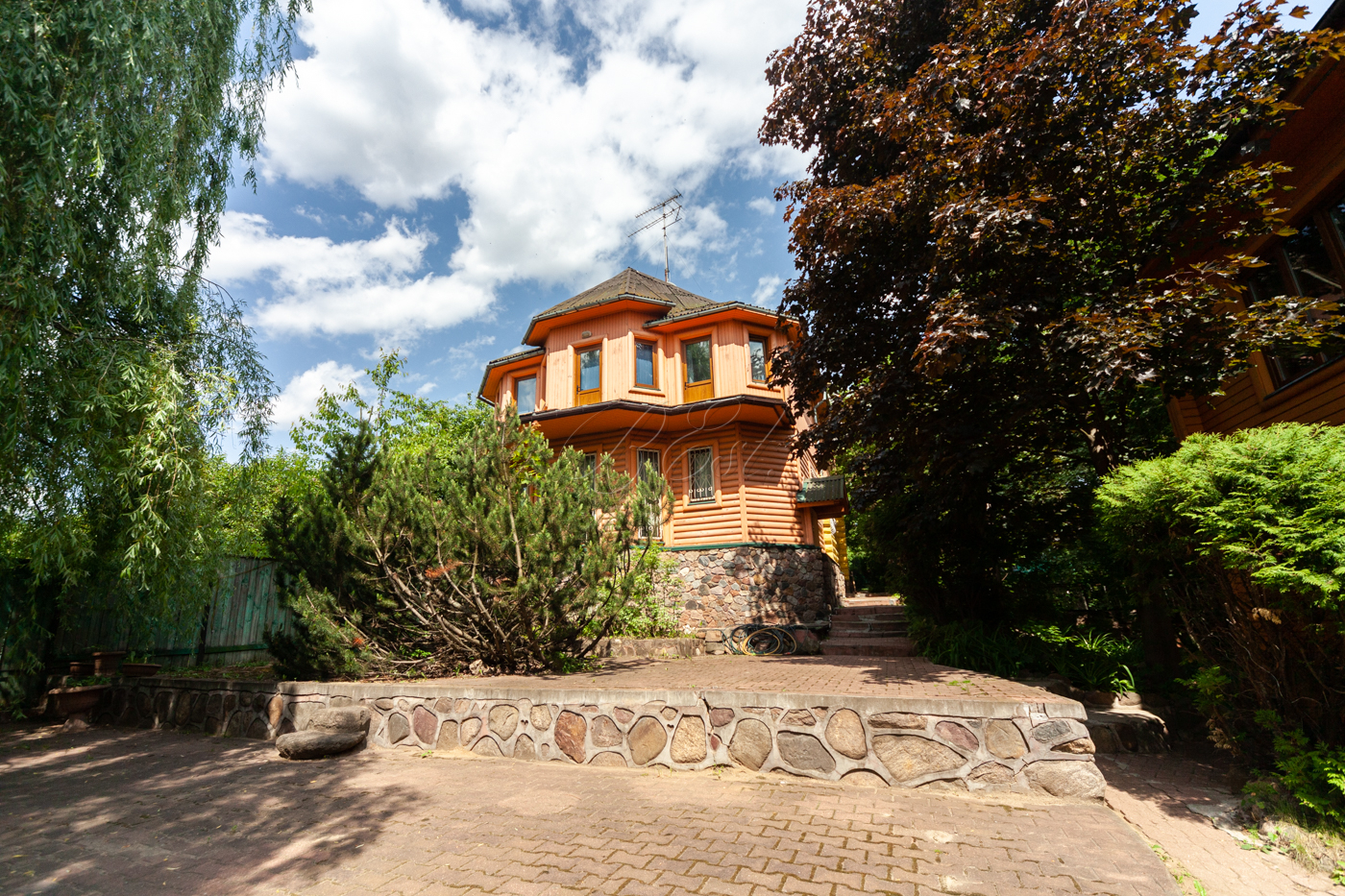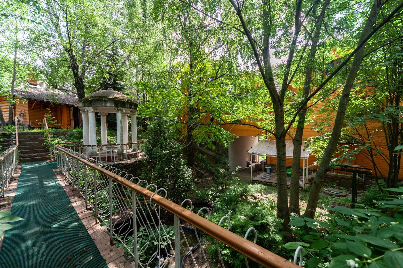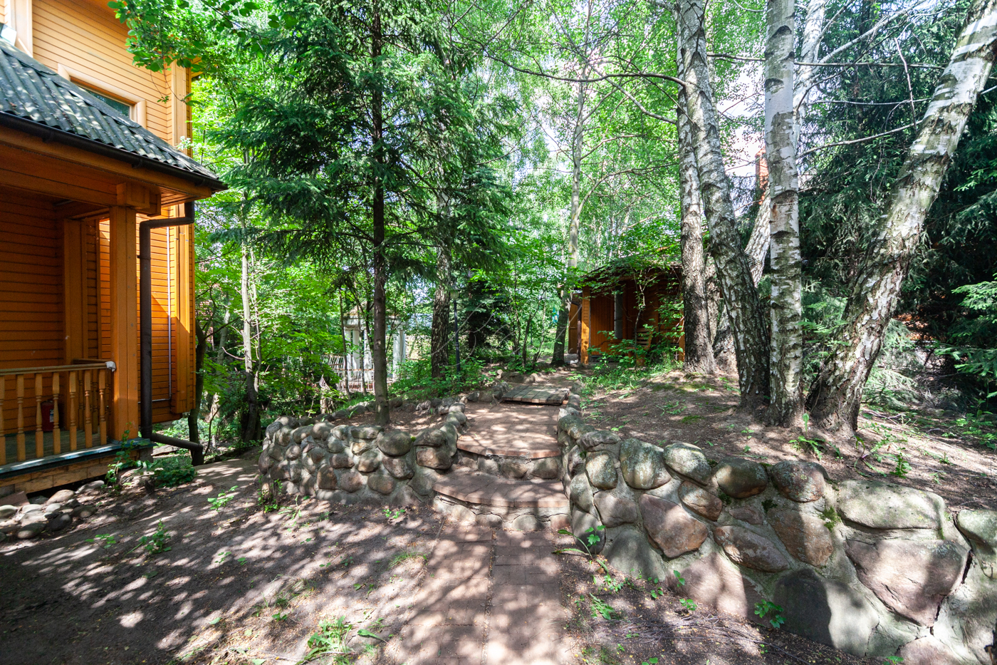 Участок имеет собственную березовую рощу, фруктовые деревья, голубые ели, сосновый бор. К участку есть 3 круглогодичных асфальтированных подъезда. Охрана, шлагбаум.