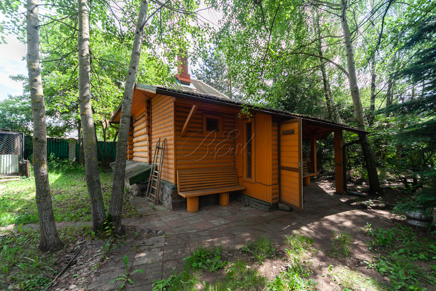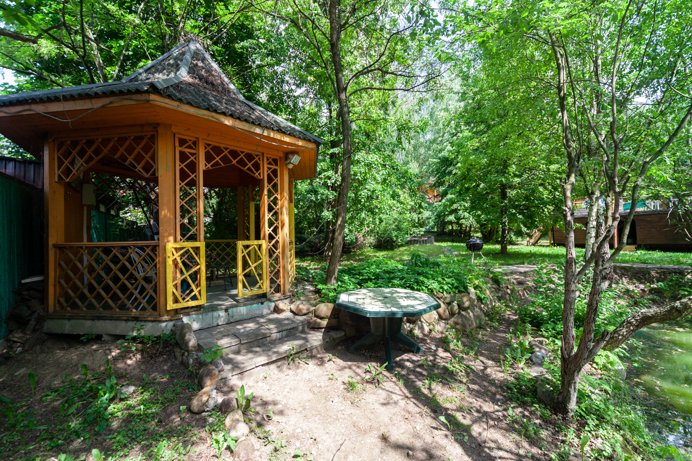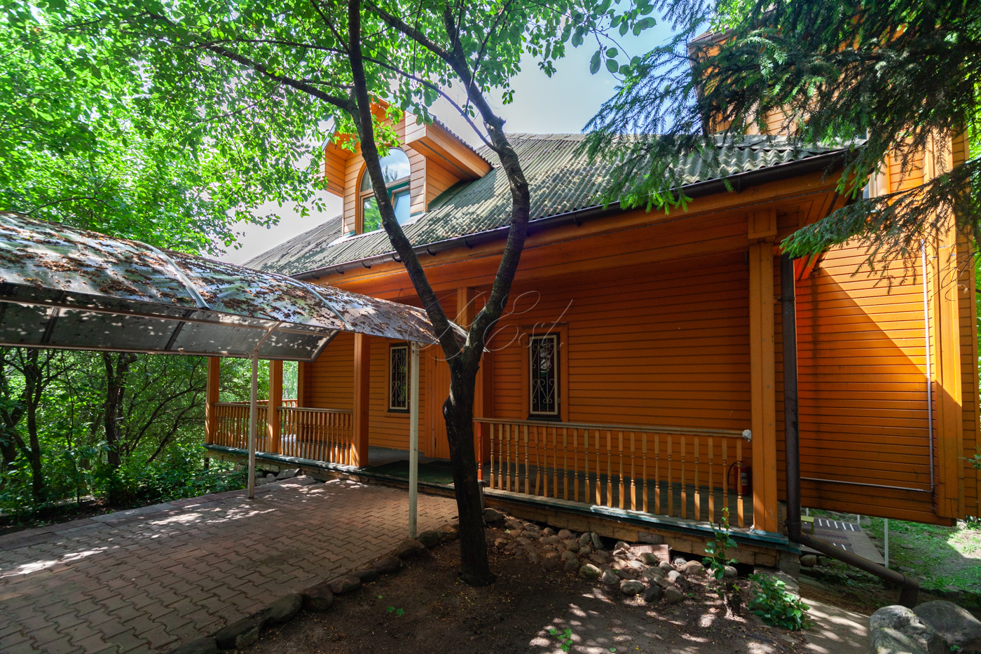 Участок имеет собственную березовую рощу, фруктовые деревья, голубые ели, сосновый бор. К участку есть 3 круглогодичных асфальтированных подъезда. Охрана, шлагбаум.