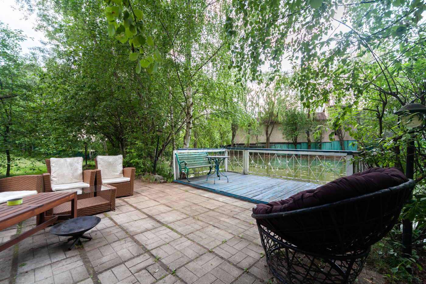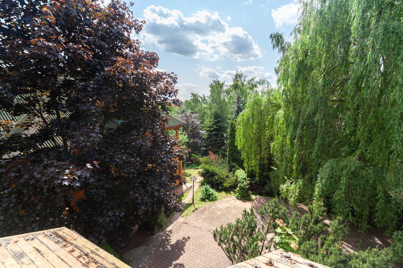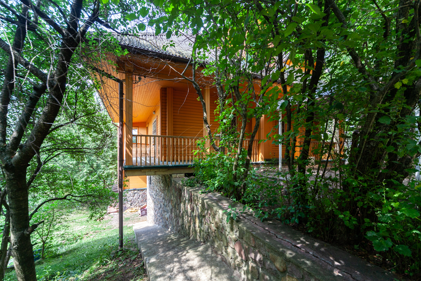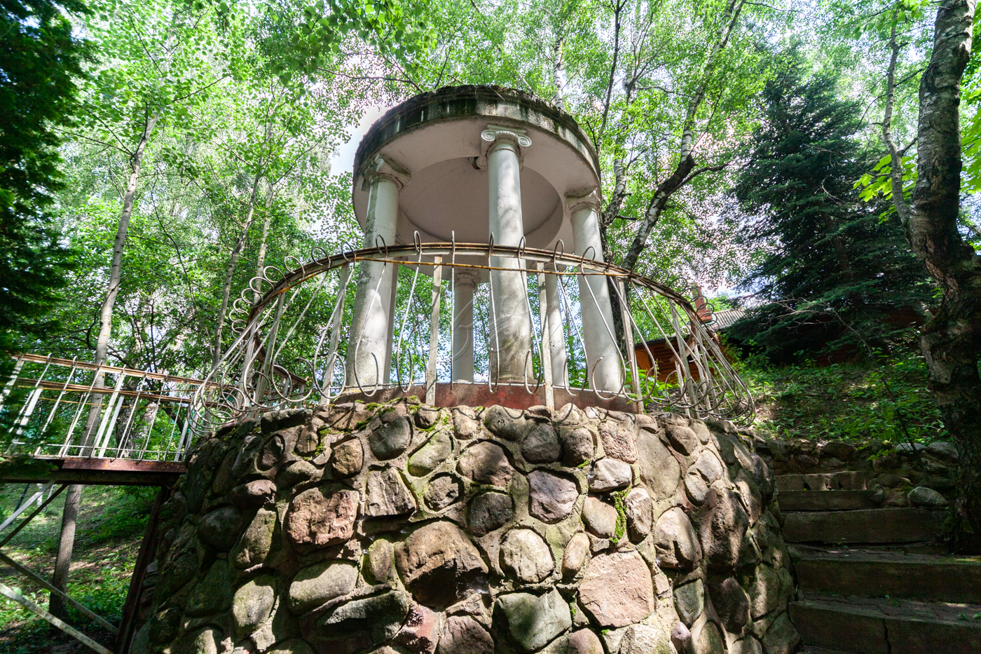 Участок имеет собственную березовую рощу, фруктовые деревья, голубые ели, сосновый бор. К участку есть 3 круглогодичных асфальтированных подъезда. Охрана, шлагбаум.