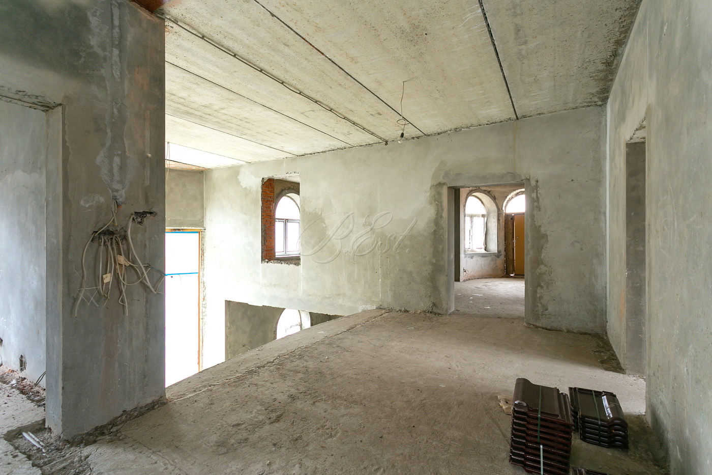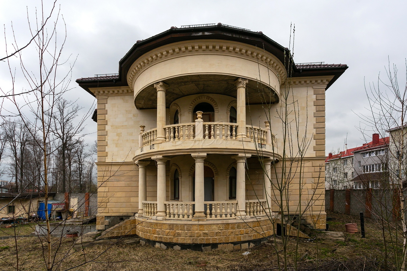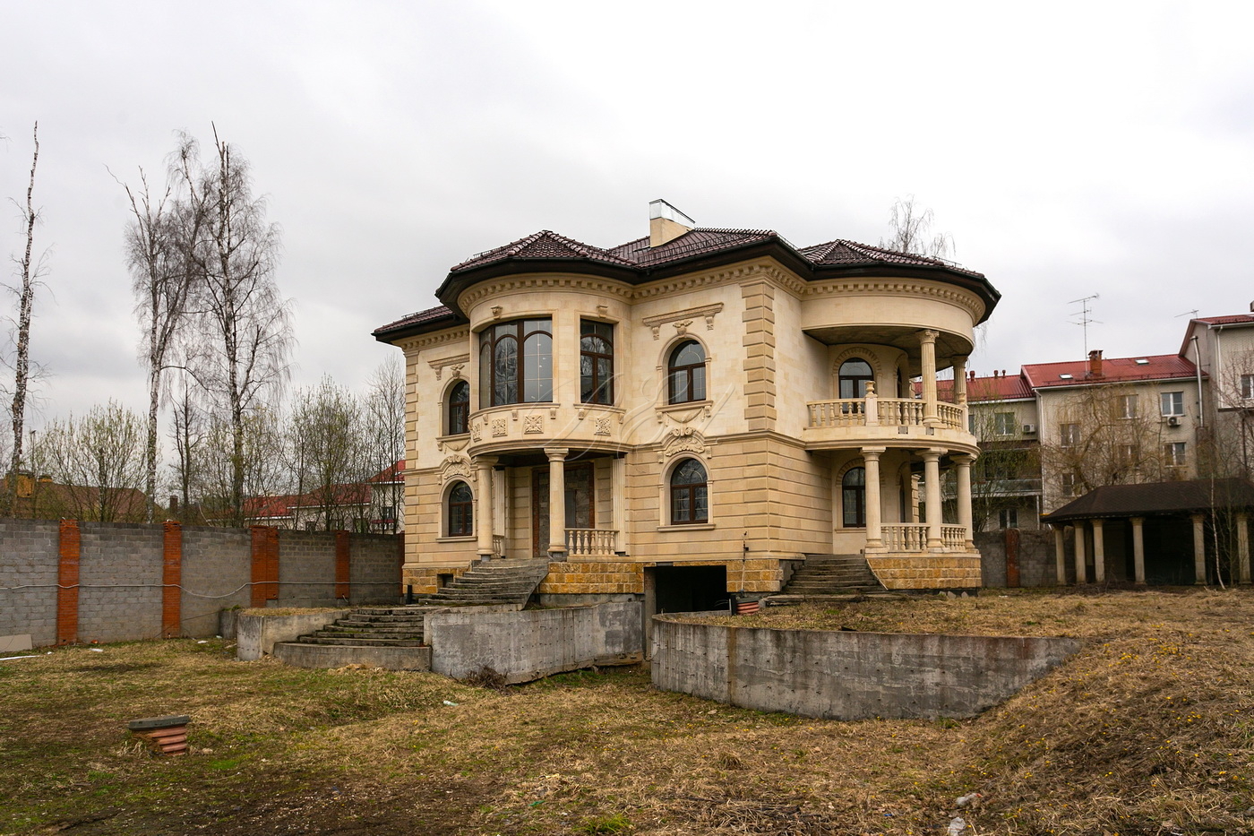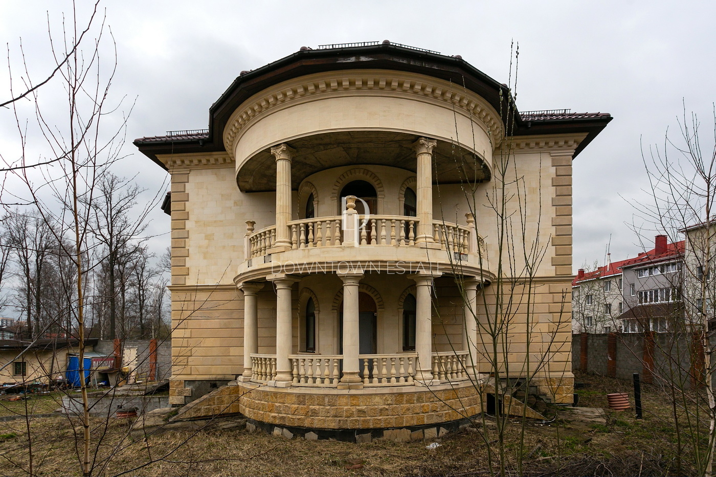 Объект 17684. В коттеджном посёлке "Лесные Поляны" предлагается кирпичный коттедж площадью 715 кв.м. Завершено капитальное строительство, возведены стены из кирпича (толщина 71см), залито укрепление из монолитных железобетонных конструкций, смонтирована крыша, выполнено остекление. Фасад выполнен из натурального дагестанского камня. Премиальное остекление по всему периметру дома, включая мансарду.
