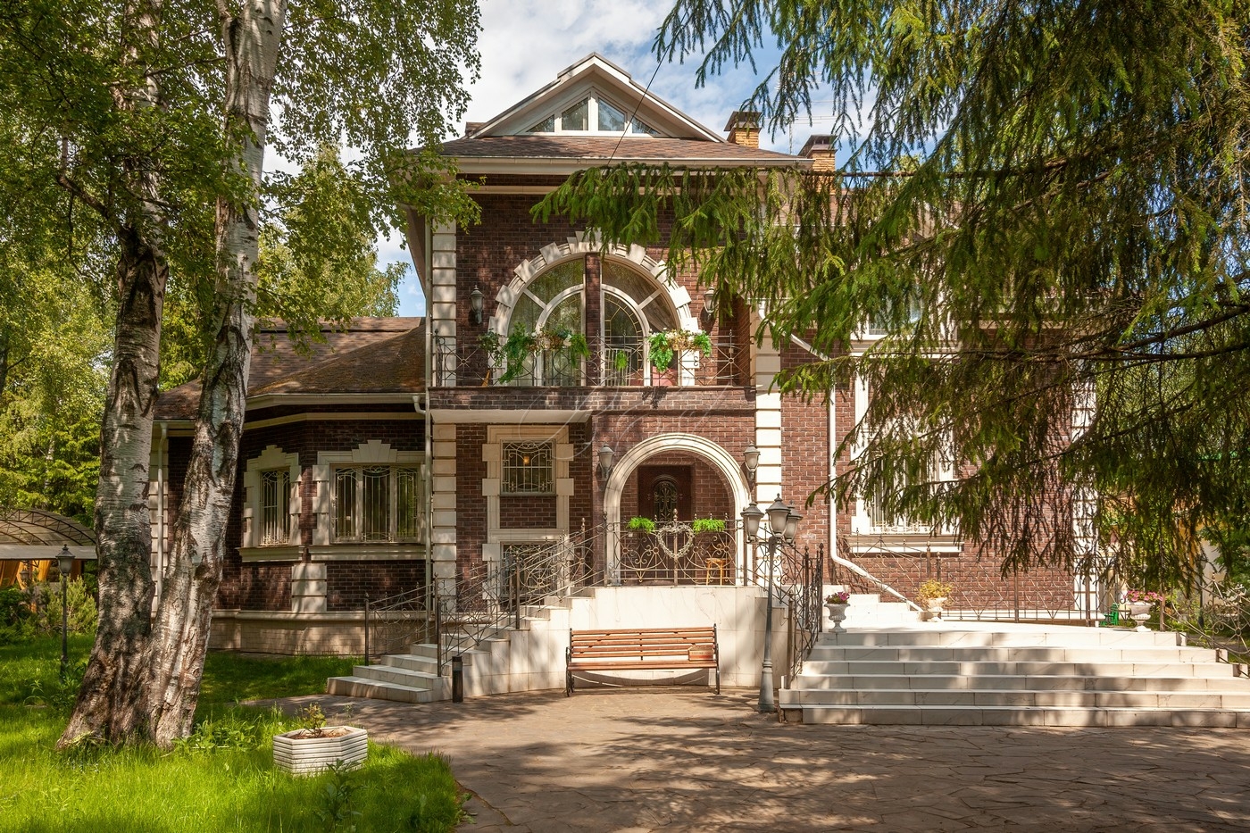 В отделке были использованы только качественные импортные материалы (строили для себя). На участке выполнен стильный ландшафтный дизайн.