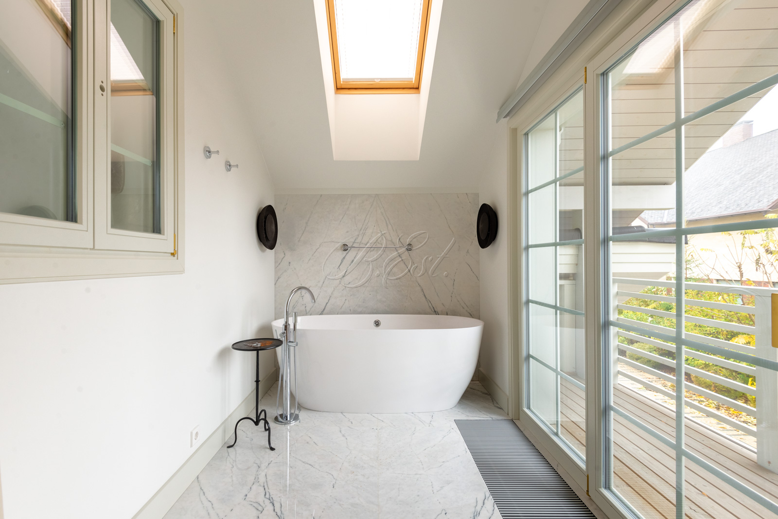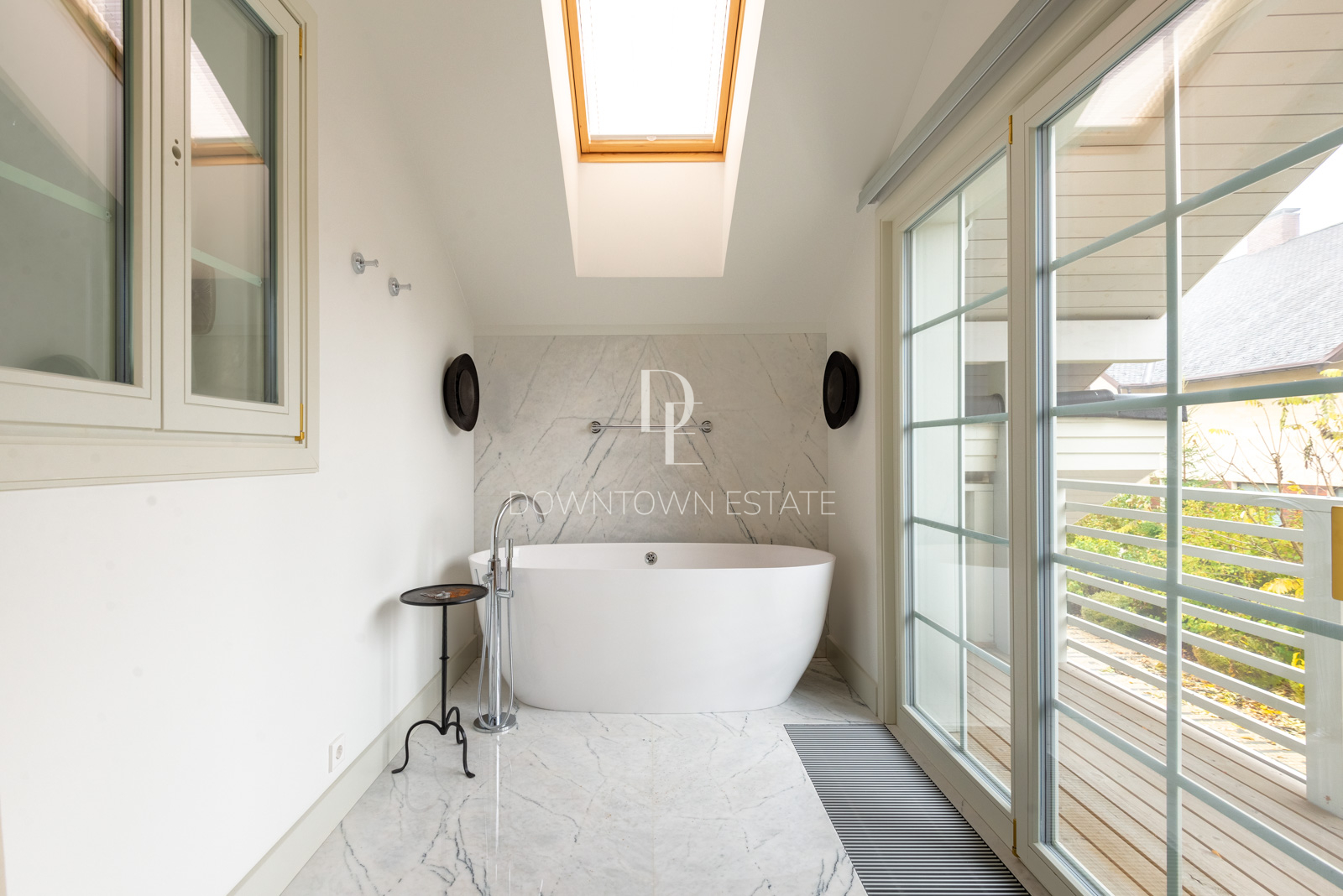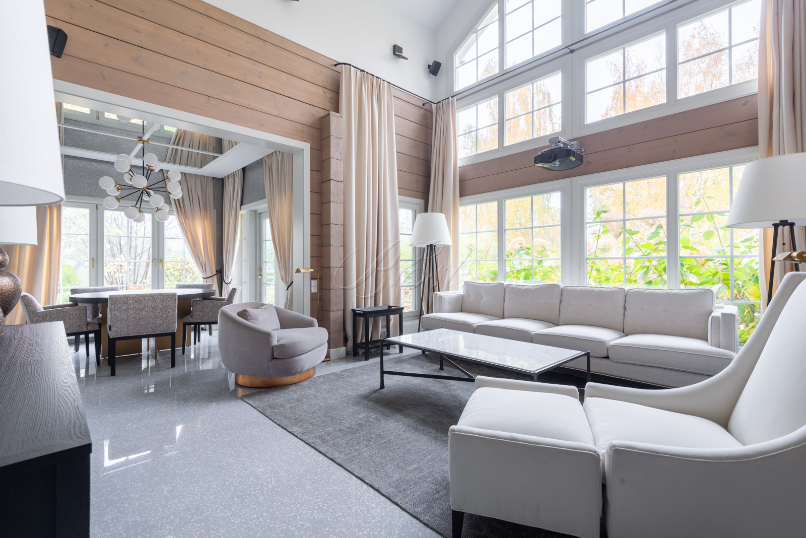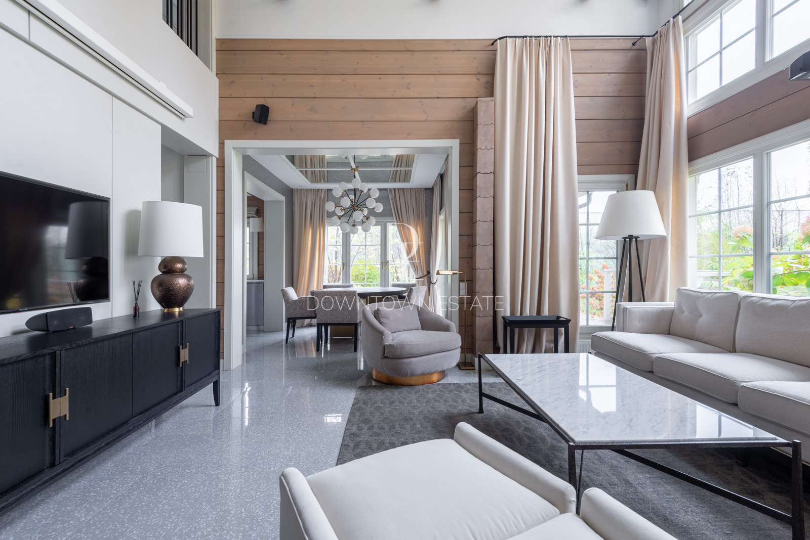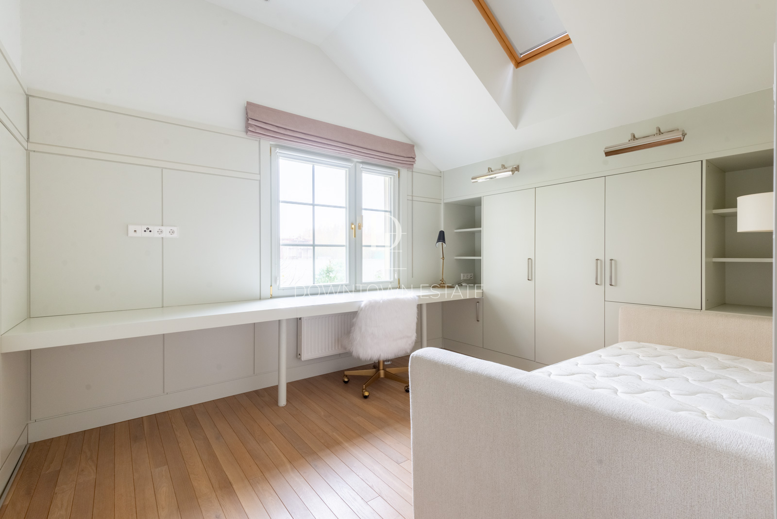 Объект 26940. Предлагается в аренду уютный дом с дизайнерским ремонтом в КП "Раздоры-2". Дом построен по проекту Хонка с архитектурными доработками автора. На участке выполнен ландшафтный дизайн, есть место для парковки 2-х автомобилей, котельная расположена в отдельном здании. Планировки включают: 1 этаж -холл, гардеробная, большая гостиная с проектором, вторым светом и панорамными окнами, столовая, полностью оборудованная кухня, гостевой санузел, кабинет с панорамным остеклением и выходом на живописную террасу с плетеной мебелью, постирочная, вход в квартиру для персонала с рабочей кухней, спальней и санузлом. На втором этаже расположилась мастер спальня с 2-мя санузлами и большой гардеробной, и еще две детские спальни с одним большим санузлом, включающим ванную и душевую. В доме дизайнерская мебель, все в идеальном состоянии. Только длительная аренда.