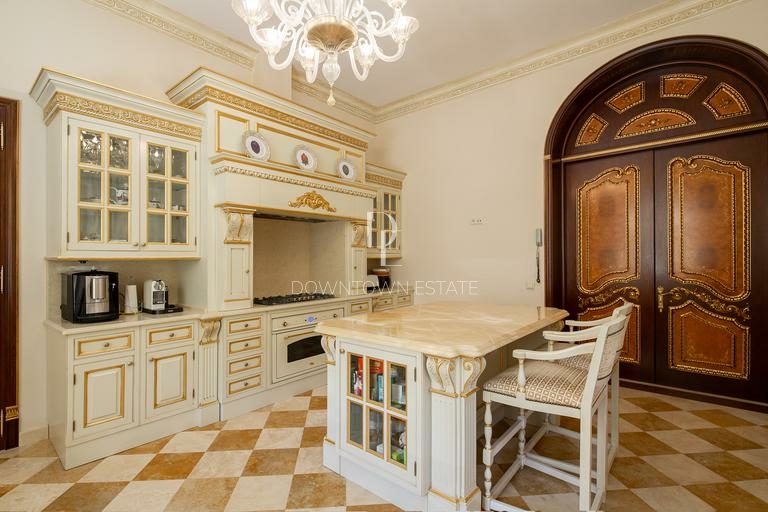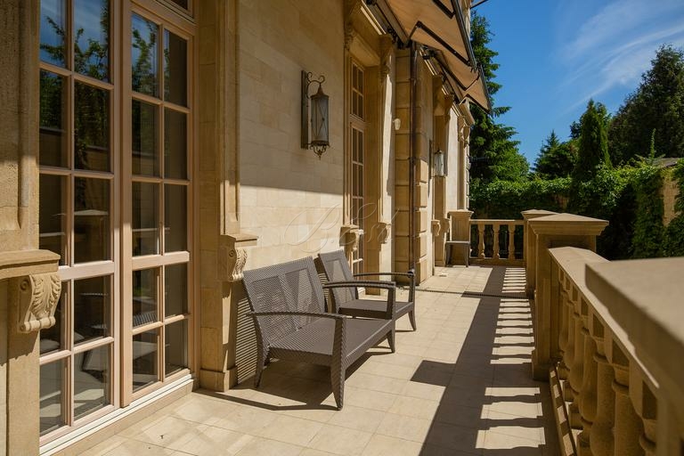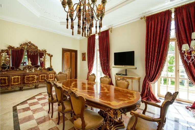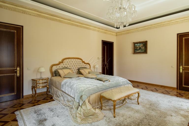 Объект 24325. Уникальная вилла в стиле итальянского палаццо в самом центре Жуковки в продаже полностью под ключ, на правой стороне за рестораном Царская Охота. Уникальность участка - в тихом расположении вдалеке от дороги, стройки по соседству отсутствуют. На участке выполнен ландшафтный дизайн, въездная группа вымощена натуральным камнем, установлен фонтан. Фасад похож на Палаццо Бернини (Рим, 1629г). Освещение участка тоже продумано: фонари от Robers и подсветка фасада. Входная зона с обогревом. Проект дома осуществлен известными архитекторами под контролем архитектурного бюро Триарт-2000, с привлечением иностранных специалистов Италии, Германии, Франции. Облицовка здания выполнена из натурального природного камня. Входные двери из натурального массива. Мебель и декор в доме - от ведущих мировых брендов: Provasi, Andrea Fanfani, Meroni Francesco e Figli, Francesco Molon, Fendi, люстры и свет: Baccarat, Baldi, B.F.Signoretti, текстиль: Provasi. Высота потолков от 4 до 9 метров. Венецианские зеркала, муранское стекло, фрески и мозаика ручной работы в интерьерах - результат тщательного поиска, подбора и кропотливой работы для самого взыскательного покупателя. В доме: холл, гардеробная, с/у, гостиная с выходом на террасу с камином, столовая, кухня, кабинет, 3 спальни с гардеробной и санузлами, бассейн 12 метров, сауна, тренажеры, душевая, домашний кинотеатр, санузел, котельная. Отдельно расположен гараж с квартирой для персонала. Кинозал оборудован полноценной караоке-системой. В гостиной находится акустический электронный рояль от Yamaha. По всему дому разведена индивидуальная система кондиционирования. Коммуникации центральные, газ магистральный, дополнительно своя скважина, электричество 40 кВт. На участке вековые сосны. Показы оперативно!