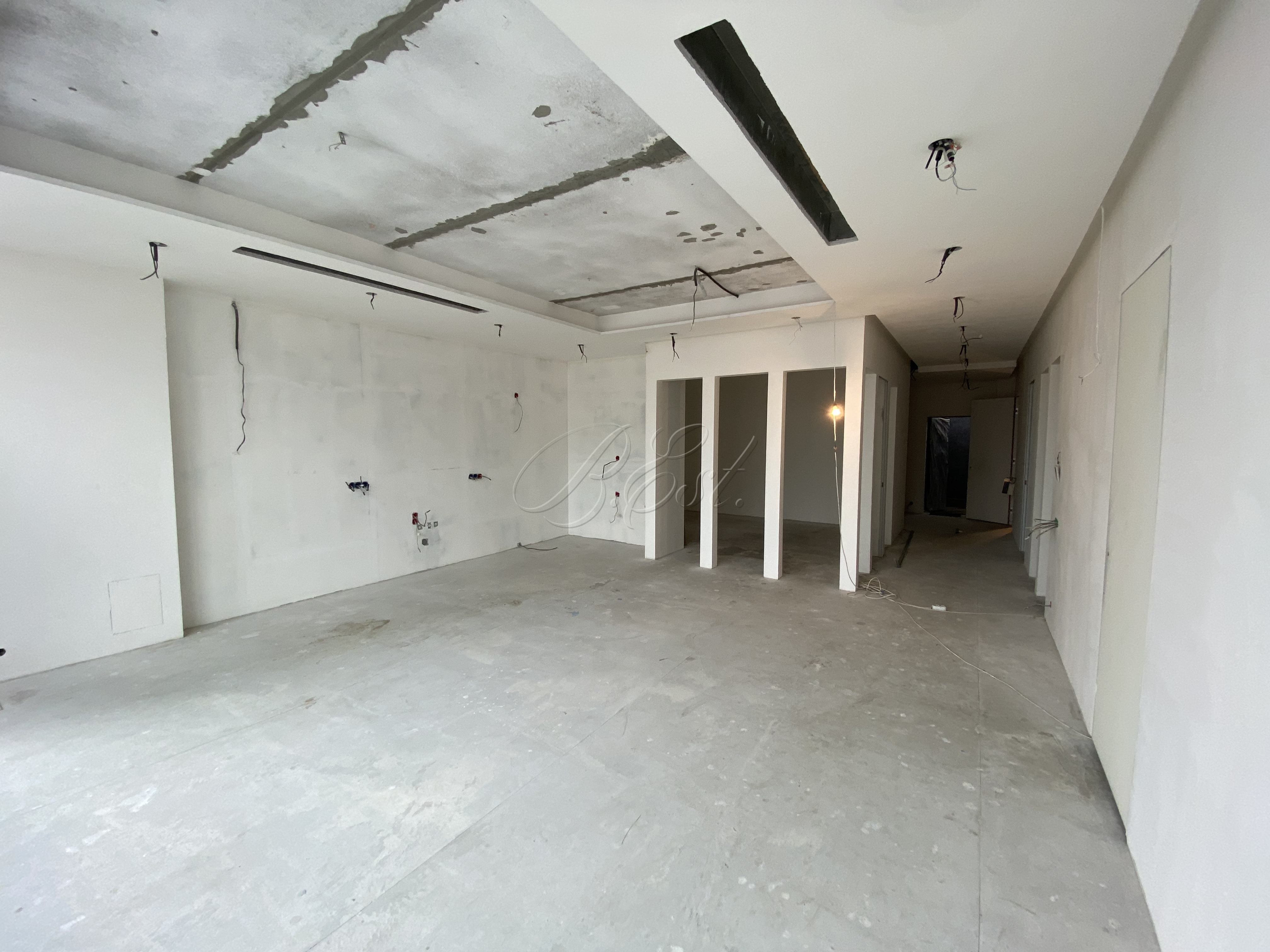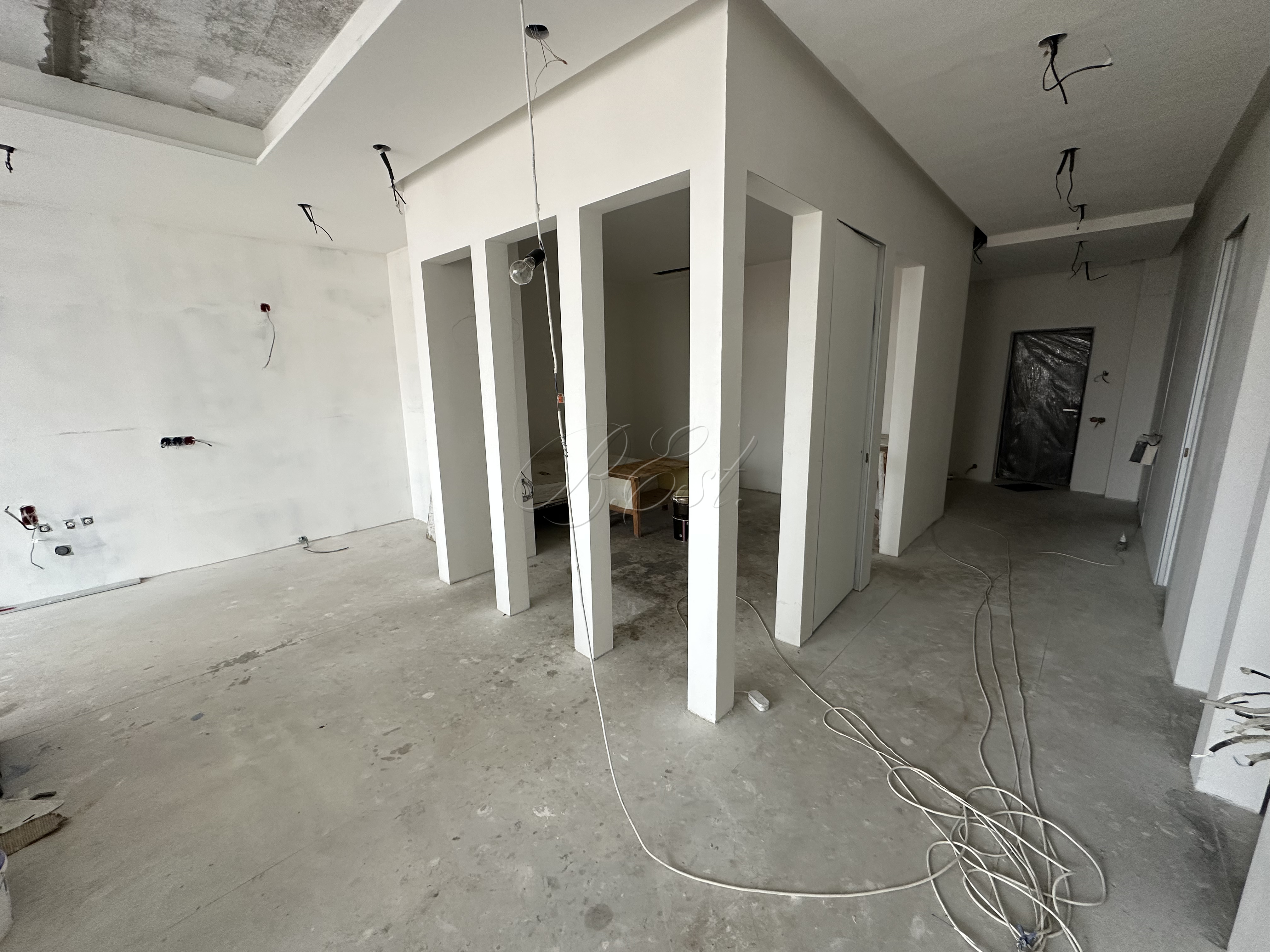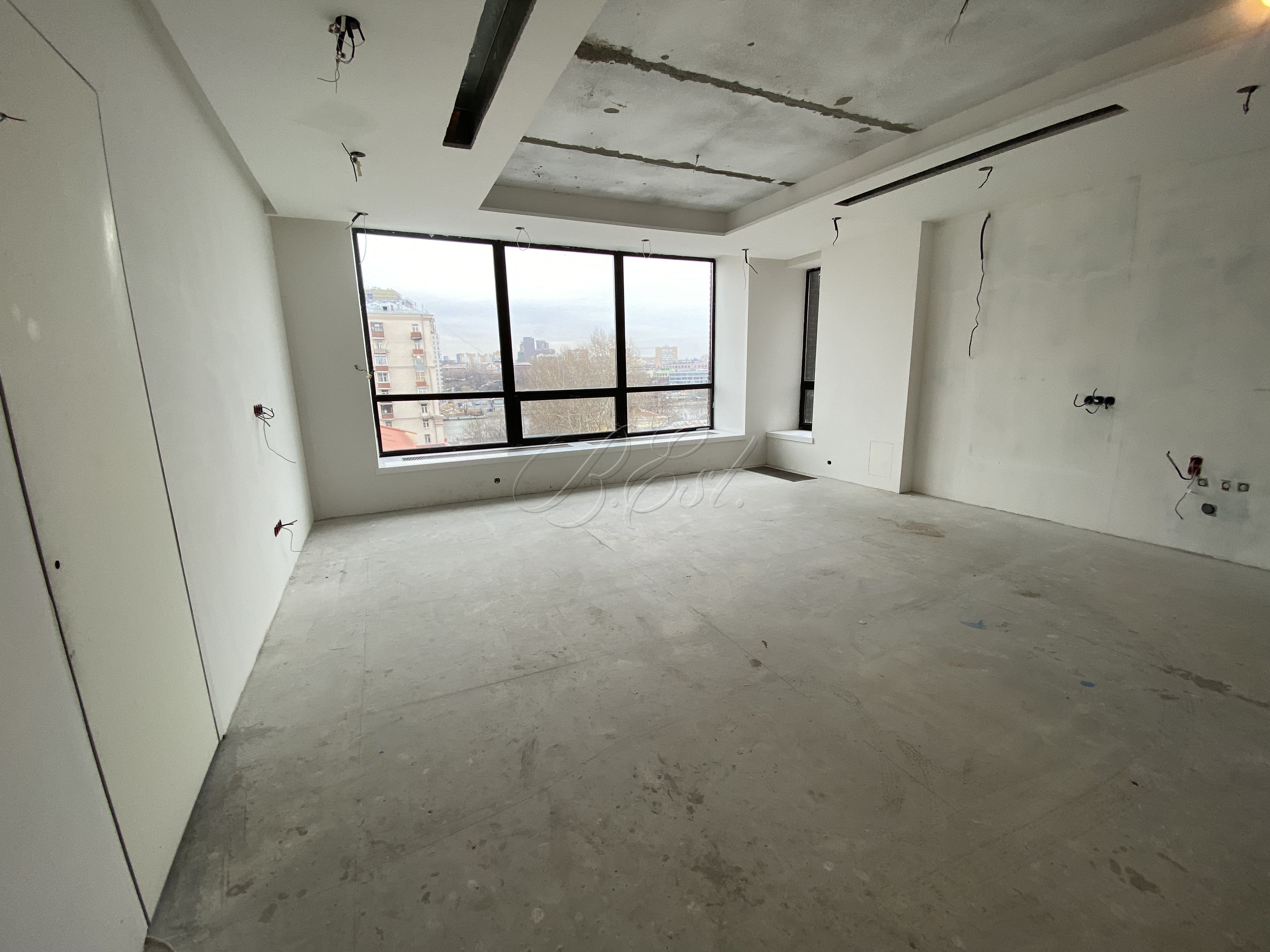 Объект 29962. Предлагается помещение в центре делового района. Проектом предусмотрены просторная кухня-гостиная, 3 отдельных кабинета, 2 полноценных санузла, гардеробная. Помещение готово к финишной отделке. Выполнен монтаж всех инжененрных сетей: электрика, водоснабжение, вентиляция. Выполнена шумоизоляция и завершена отделка санузлов. Установлены межкомнатные двери. Из окон открывается панорамный вид на реку.