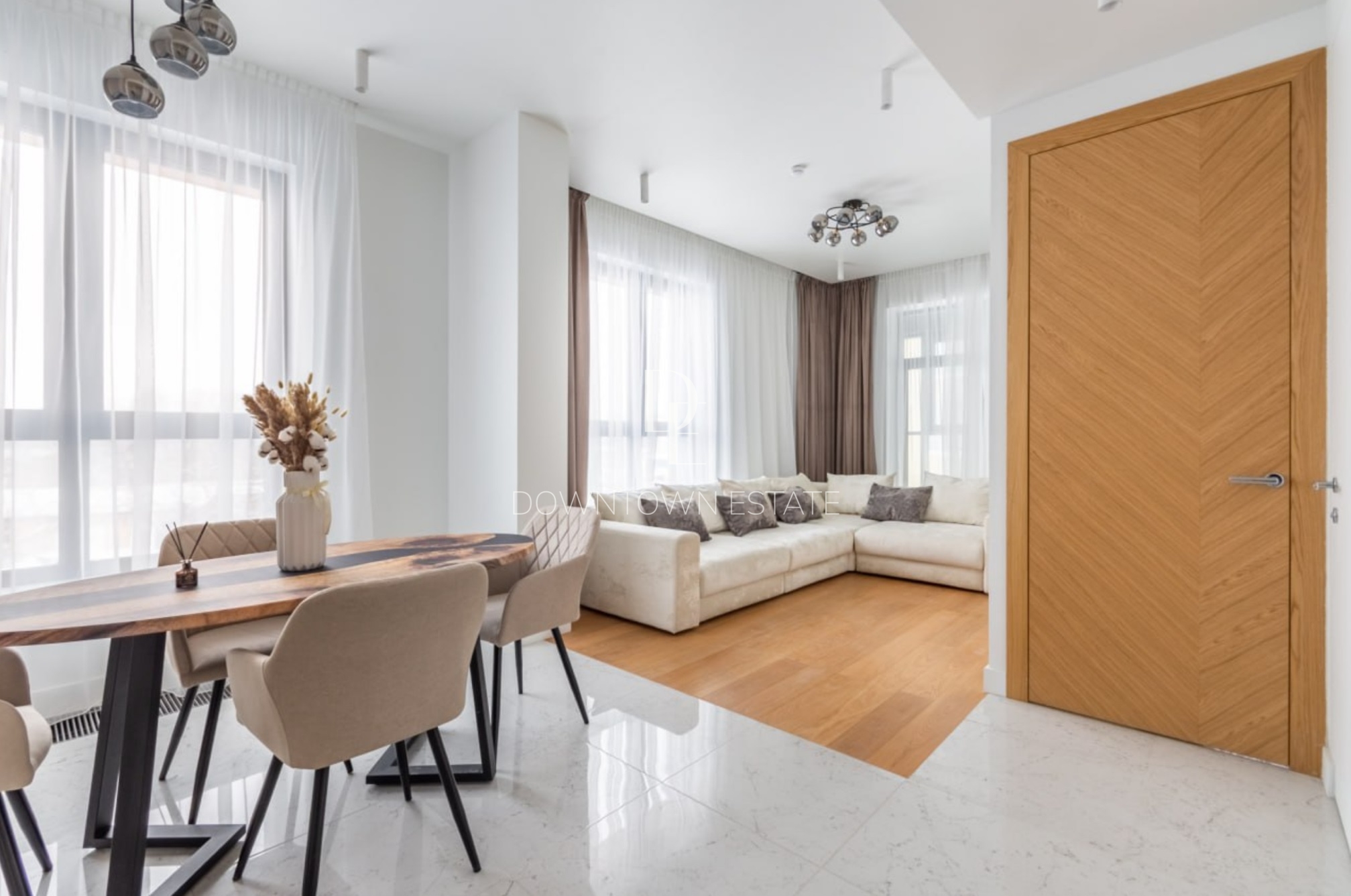 Динамично развивающийся район большого Сити расположился вдоль набережной. В жилом комплексе реализована концепция "двор без машин", масса предприятий повседневного спроса, огороженная территория, круглосуточная охрана и видеонаблюдение. Быстрый выезд на ТТК, пешая доступность до 2 набережных.