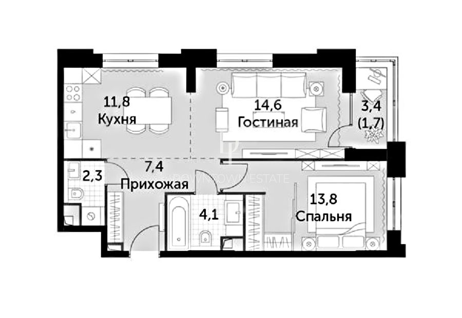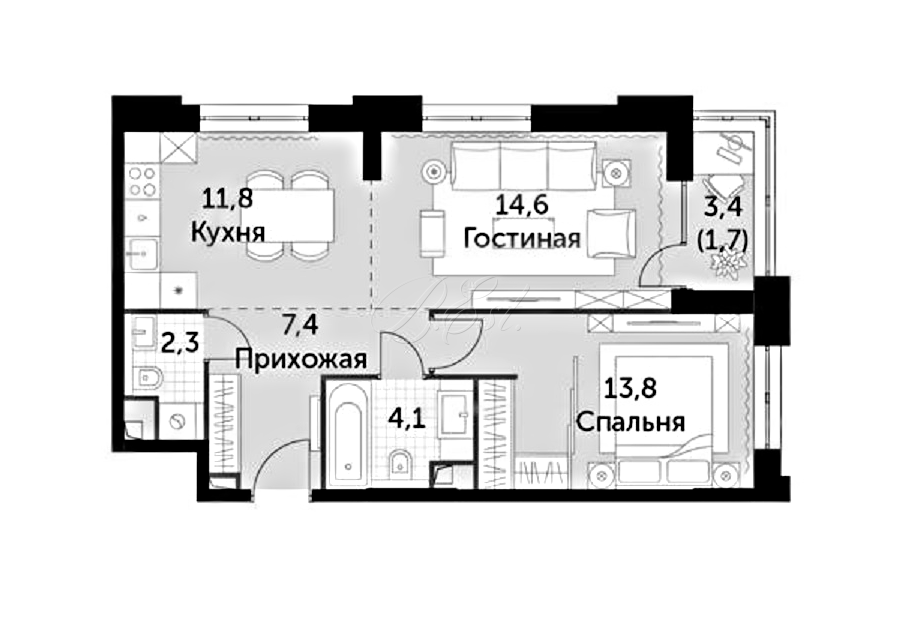 Объект 29524. Предлагается евро-двухкомнатная квартира в современном жилом комплексе бизнес-класса Sidney Sity. Функциональная планировка: просторная кухня-гостиная с выходом на лоджию, спальня, совмещенный и гостевой санузлы. Квартира укомплектована качественной бытовой техникой и мебелью.