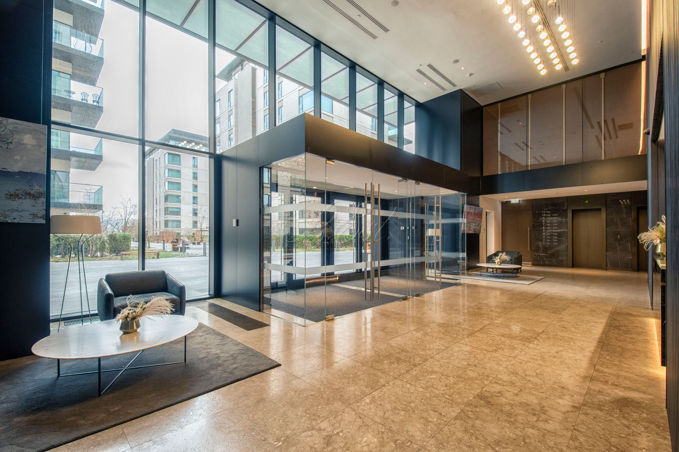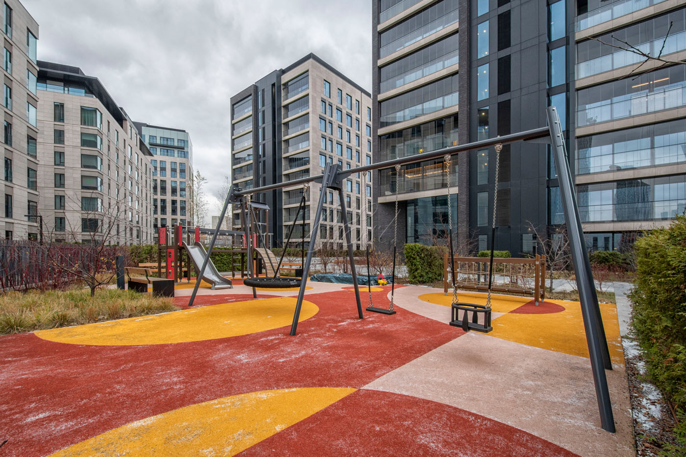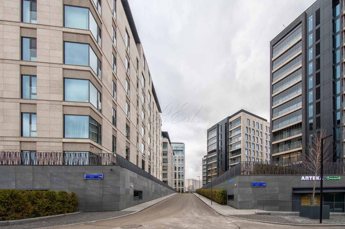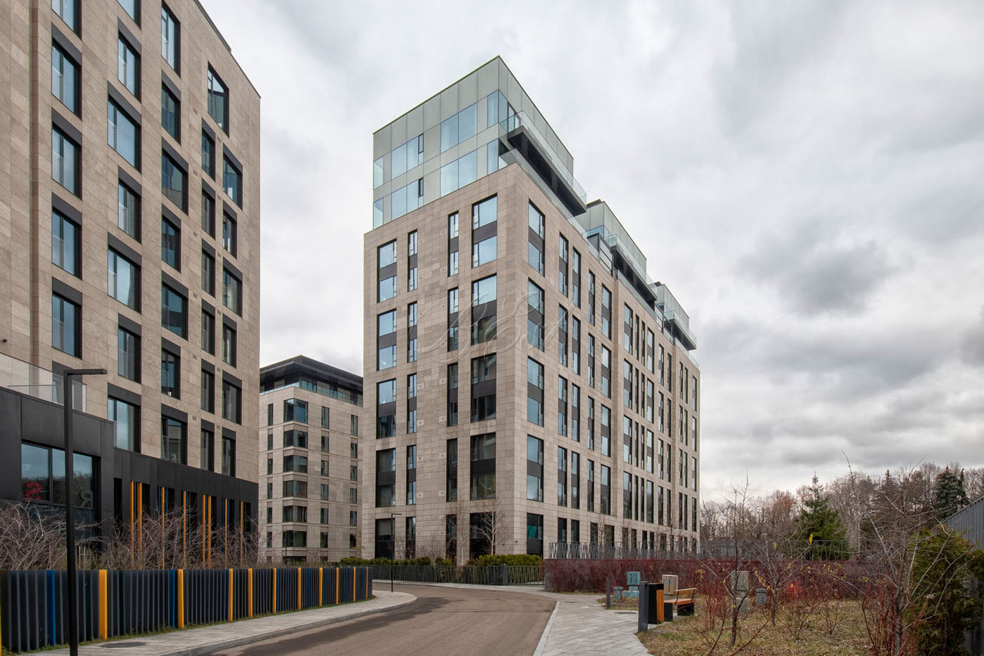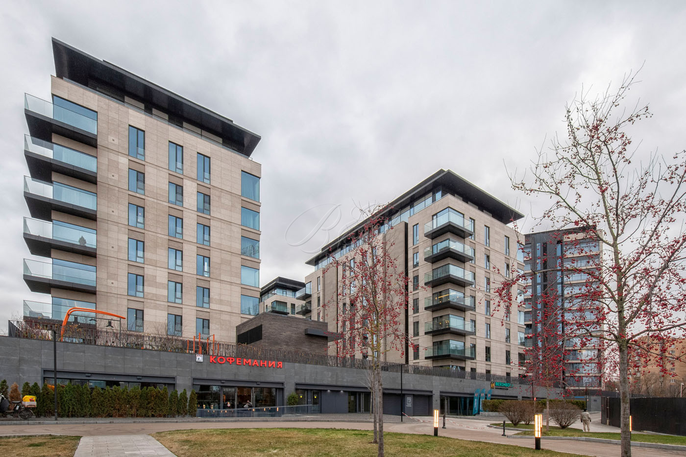 На благоустроенной закрытой территории ЖК есть вишневый сад с беседками и фонтанами, зеленые дворы с террасами, поле для игры в городки, спортивная площадка, уличная шахматная доска, большая и малая детские площадки. Предусмотрен прямой выход в парк. К услугам жителей профессиональная управляющая компания и круглосуточный консъерж-сервис (организация уборки, химчистки, доставки продуктов и пр.), World Class Luxury с большим бассейном и SPA, английский детский сад, ресторан, спортивно-развивающий клуб, химчистка, аптека.