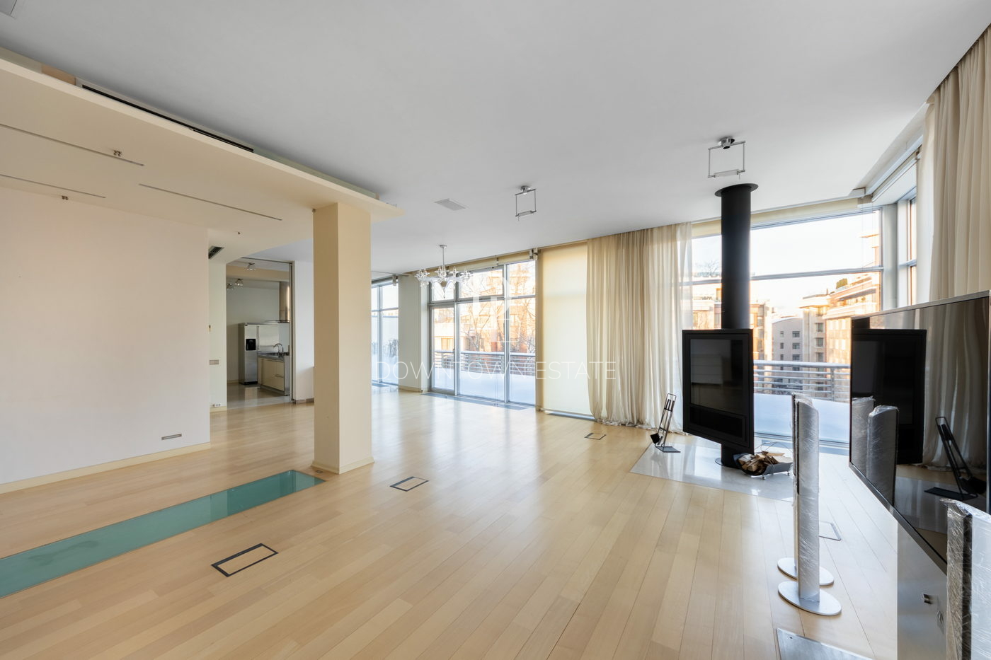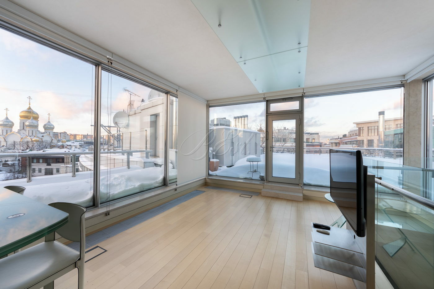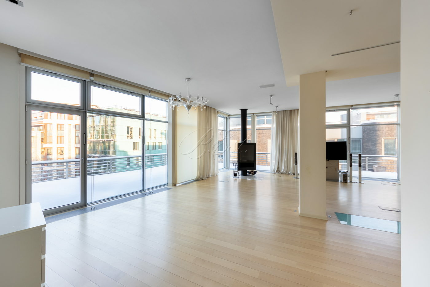 Объект 28533. Предлагается роскошный двухуровневый пентхаус с непревзойденными видовыми характеристиками в элитном жилом комплексе "Молочный Дом". Функциональная планировка: на первом уровне - просторная гостиная с зоной кухни и столовой, две спальни с гардеробными и санузлами, третья комната свободного назначения, постирочная, гостевой санузел; на втором - комната отдыха с барной стойкой, выход на терассу. Квартира меблирована и оборудована всей необходимой для комфортного проживания техникой.