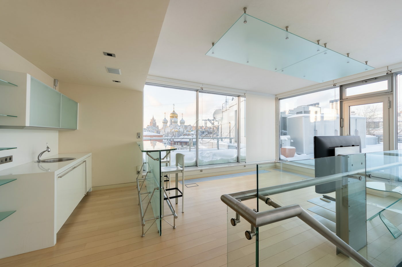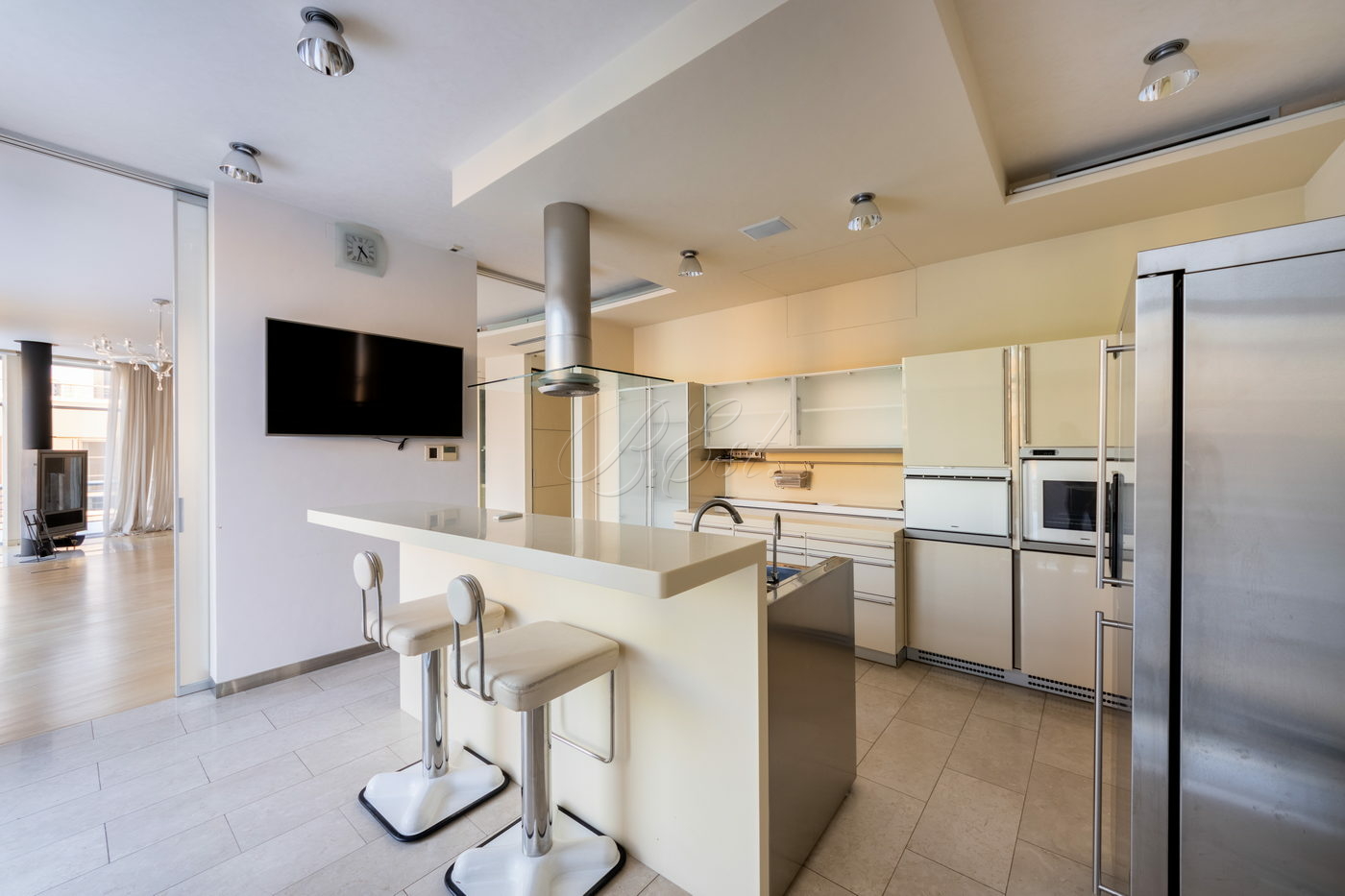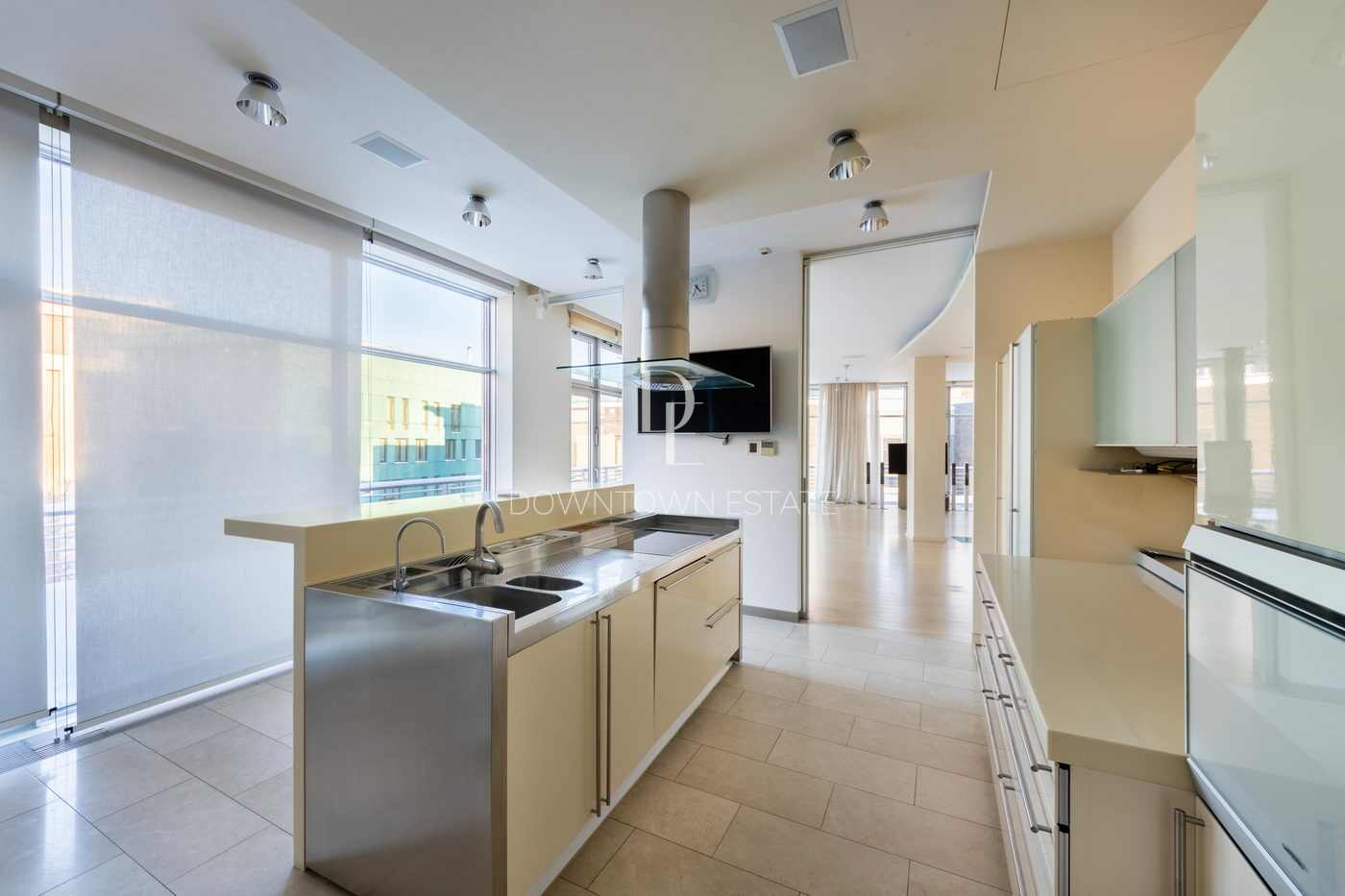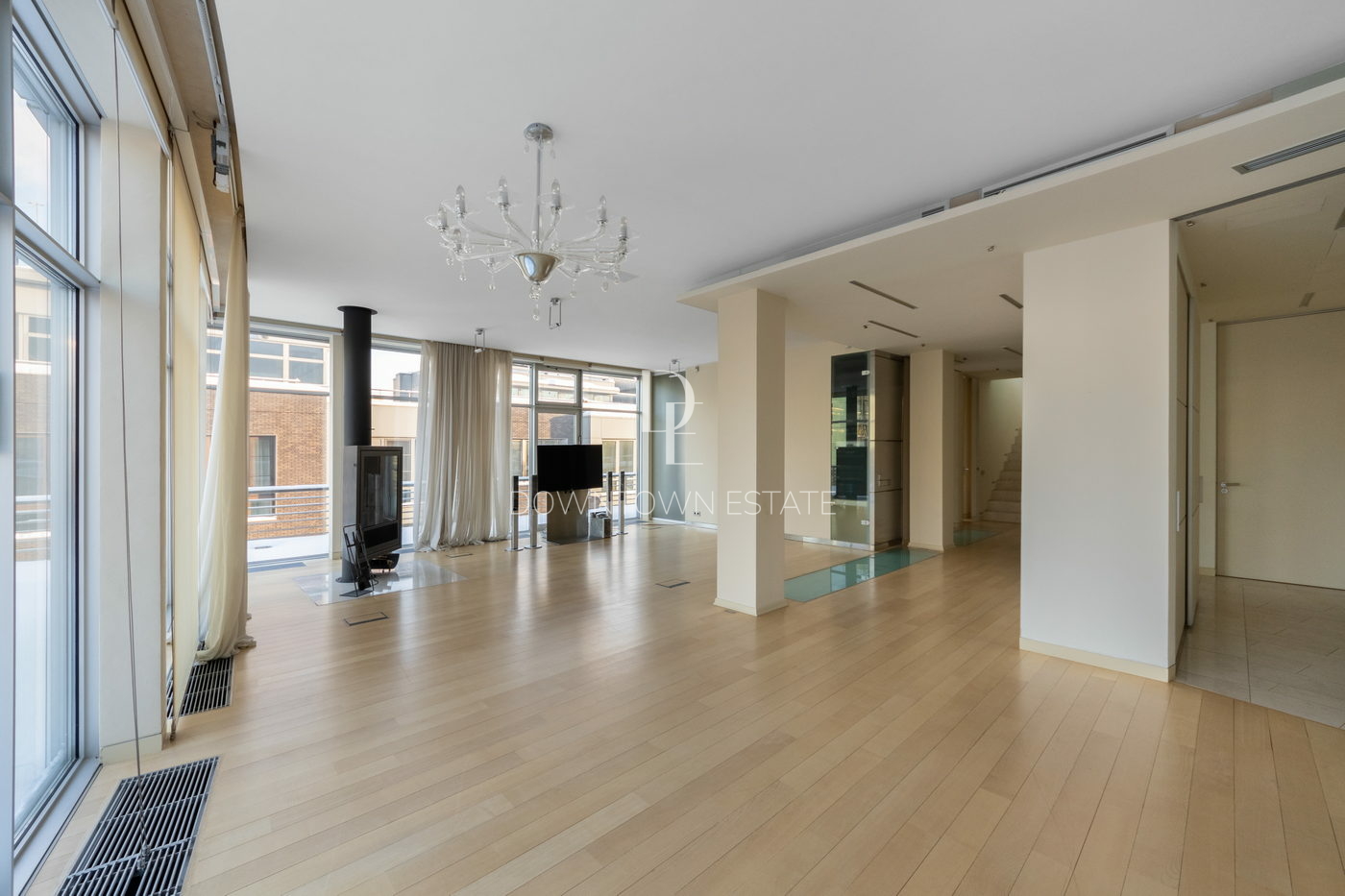 Объект 28533. Предлагается роскошный двухуровневый пентхаус с непревзойденными видовыми характеристиками в элитном жилом комплексе "Молочный Дом". Функциональная планировка: на первом уровне - просторная гостиная с зоной кухни и столовой, две спальни с гардеробными и санузлами, третья комната свободного назначения, постирочная, гостевой санузел; на втором - комната отдыха с барной стойкой, выход на терассу. Квартира меблирована и оборудована всей необходимой для комфортного проживания техникой.