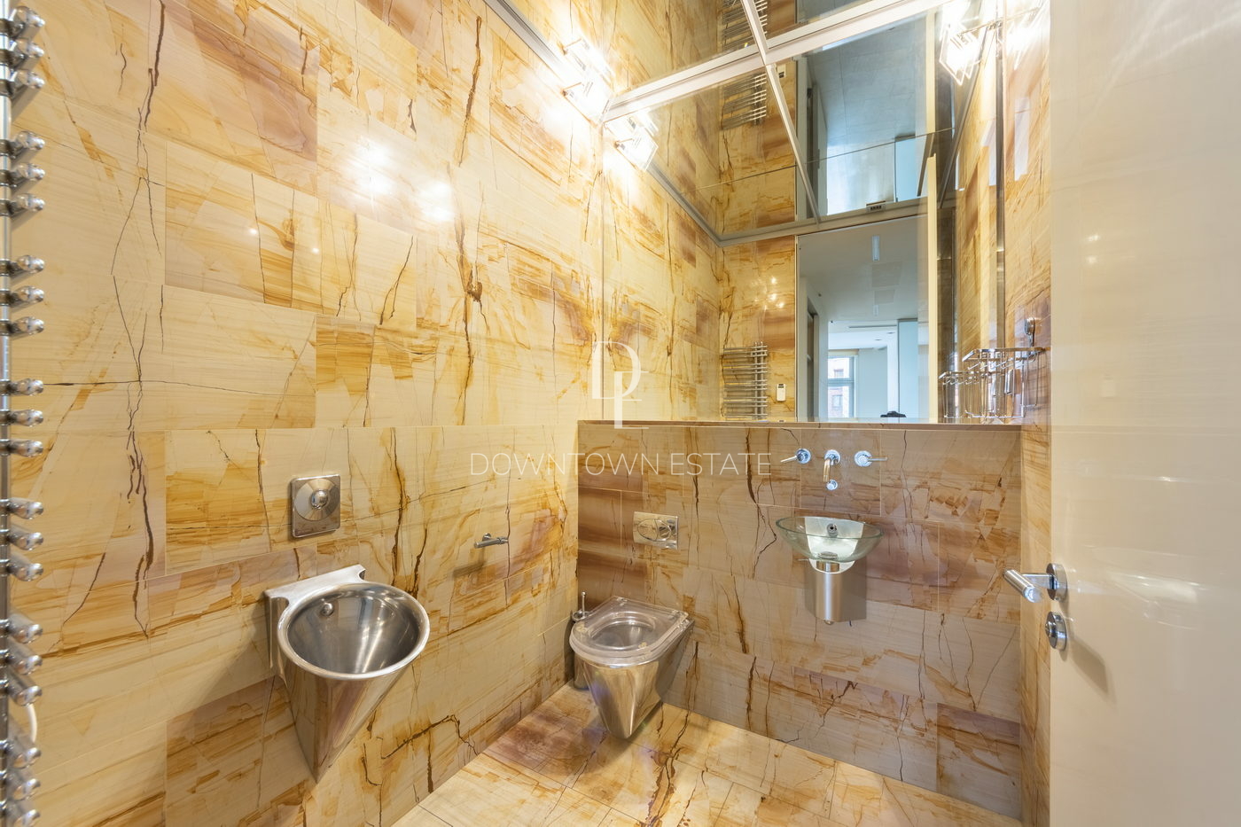 Дом с круглосуточной охраной и видеонаблюдением, есть бассейн, сауна и своя SPA-зона. Два машиноместа в подземном паркинге входят в стоимость аренды.