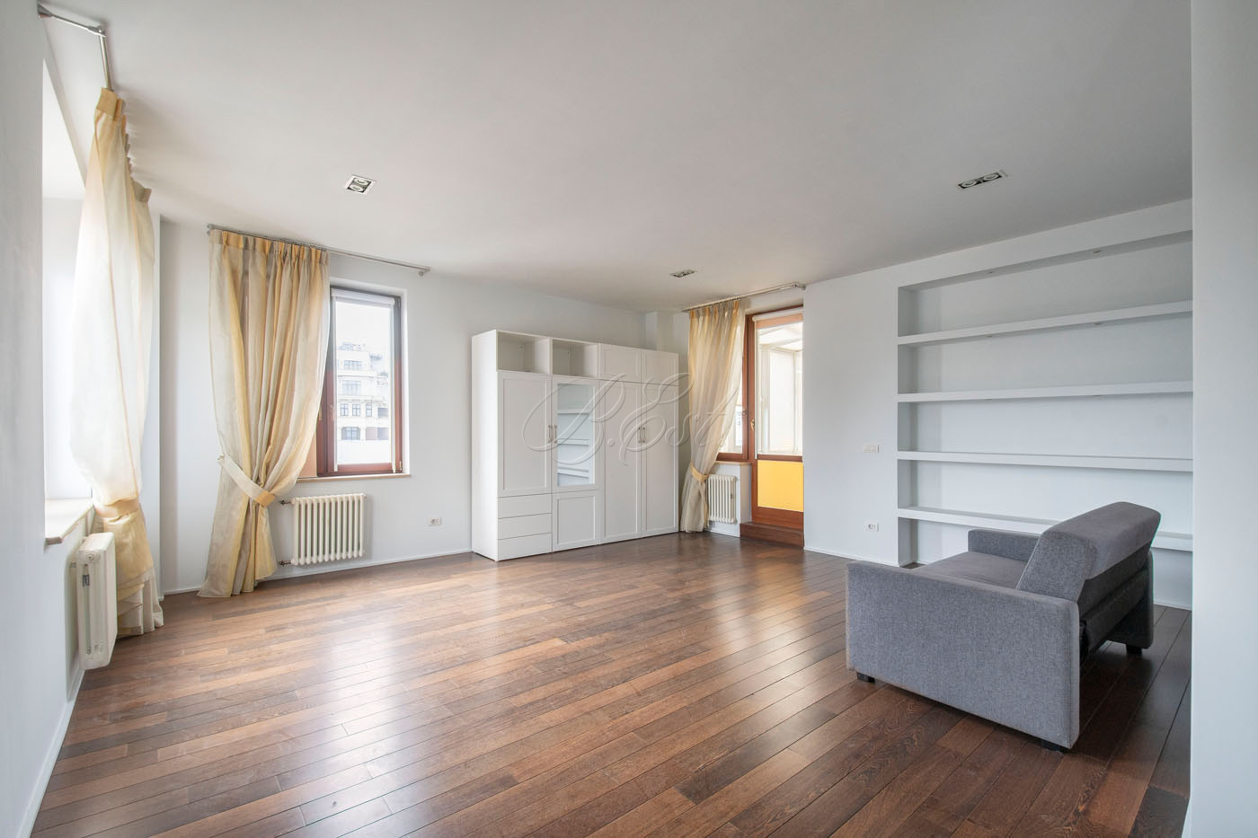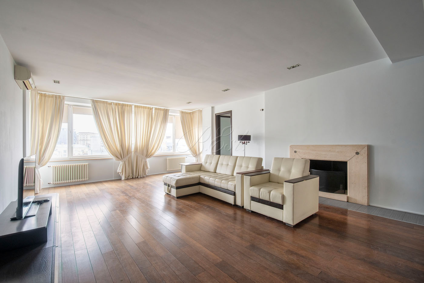 Объект 27177. Предлагается четырехкомнатная квартира в самом центре Москвы. Планировка: просторная к гостиная с камином и выделенной зоной кухни-столовой, три спальни, большая гардеробная, два санузла, постирочная, два балкона.