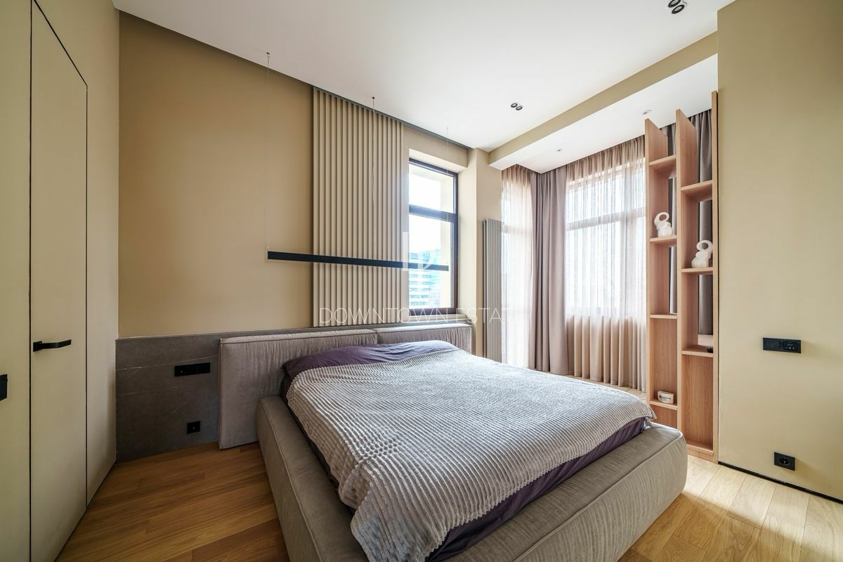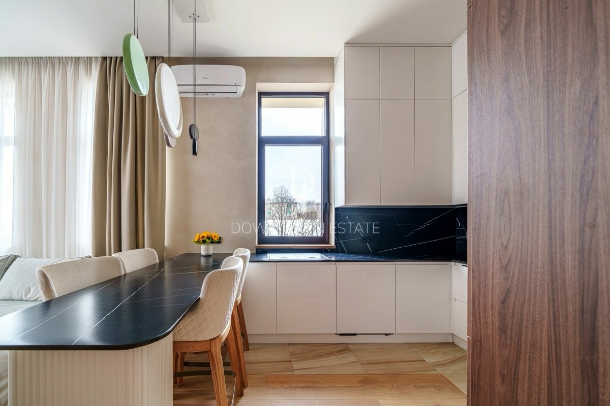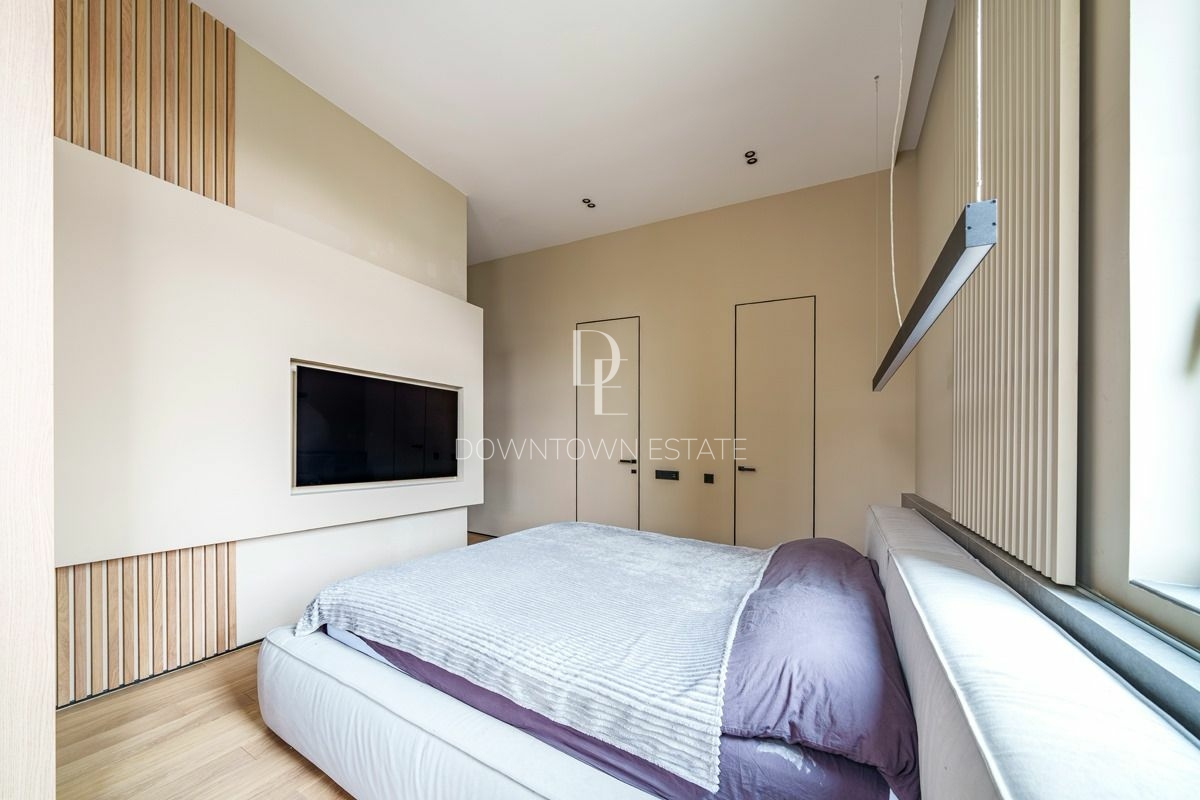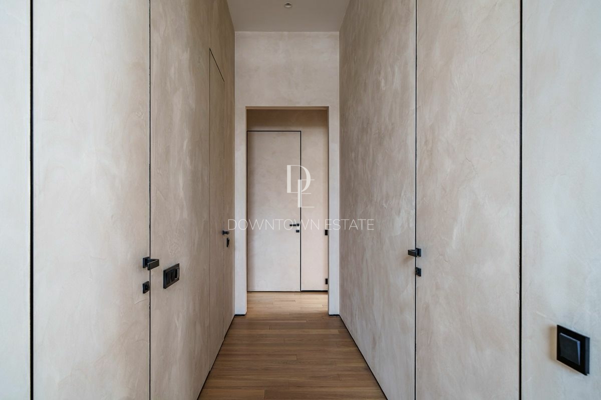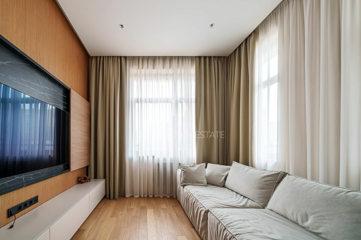 Объект 30024. Предлагается стильная квартира с дорогим дизайнерским ремонтом, мебелью и всей необходимой техникой. Продуманная планировка: кухня-гостиная (cо всей встроенной техникой Asko, Liebherr, мебель с фурнитурой Blum, доводчики при нажатии), мастер-спальня с гардеробной и санузлом (сантехника и смесители из Италии, ванная Salini, мебель Verona), 2 детские комнаты, совмещенный и гостевой санузлы, гардеробная. Высота потолков в черновом виде - 3.55 м!