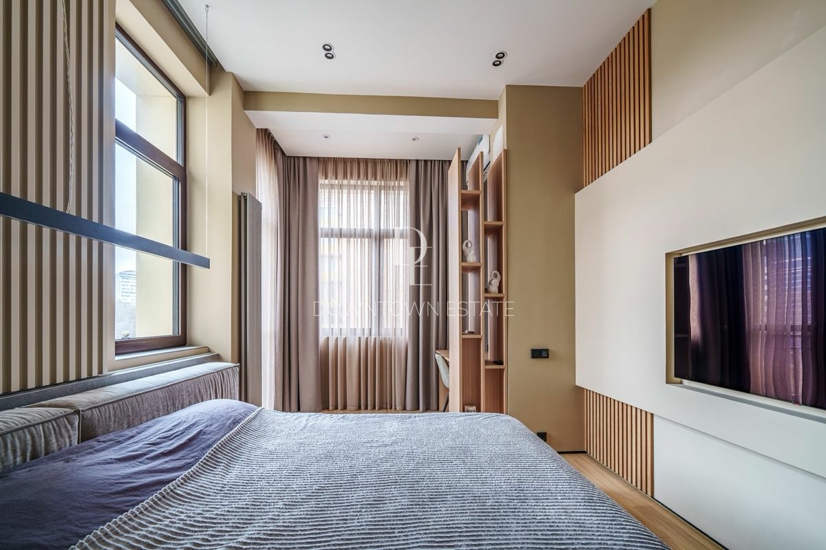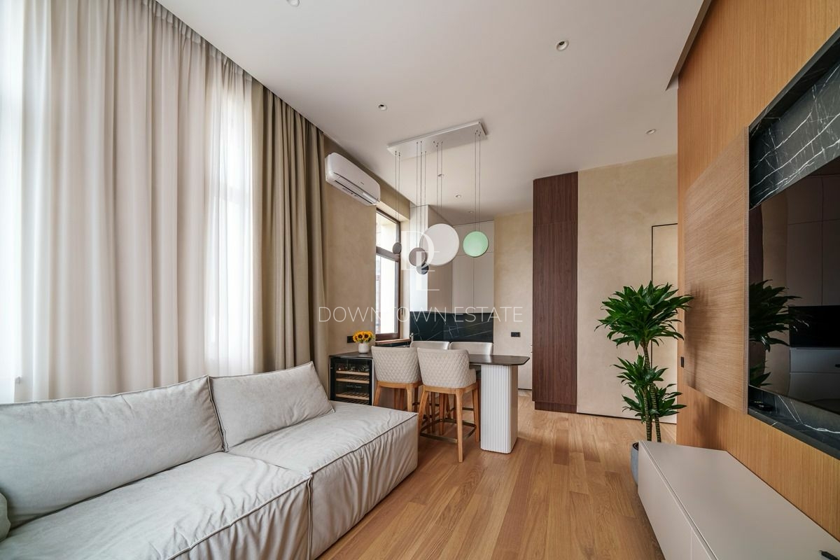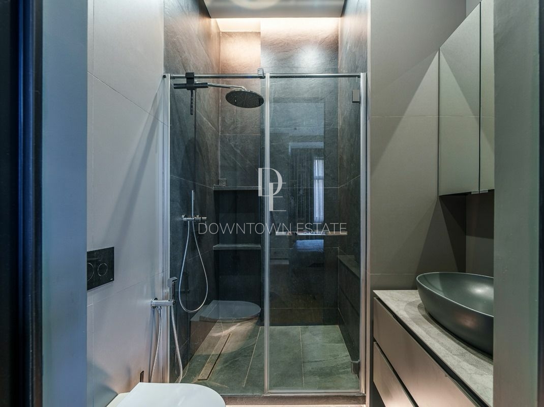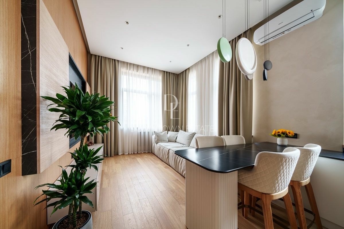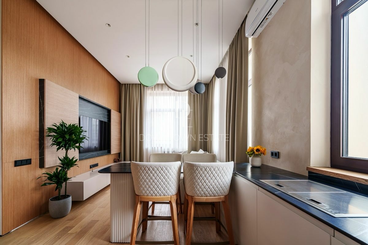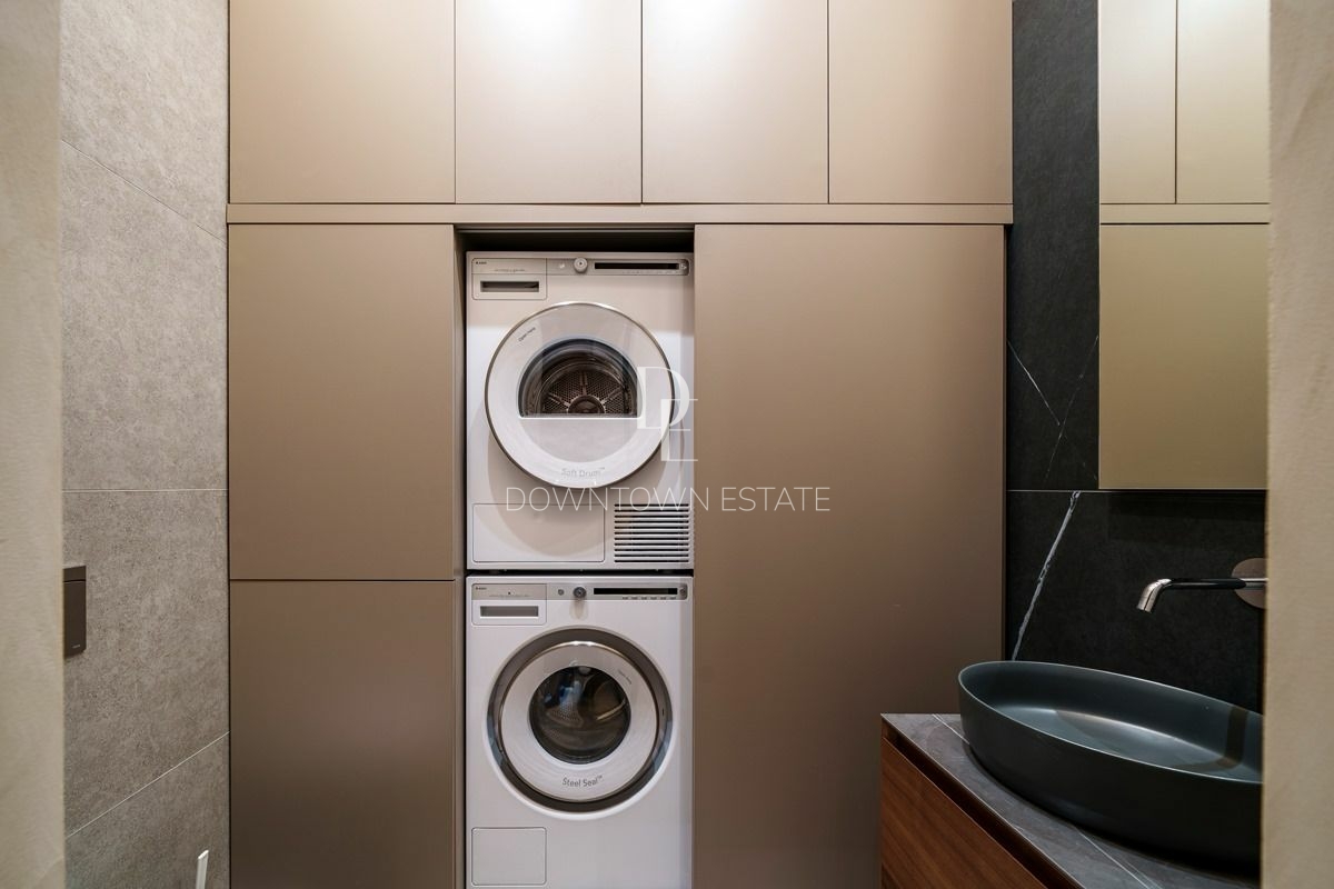 Объект 30024. Предлагается стильная квартира с дорогим дизайнерским ремонтом, мебелью и всей необходимой техникой. Продуманная планировка: кухня-гостиная (cо всей встроенной техникой Asko, Liebherr, мебель с фурнитурой Blum, доводчики при нажатии), мастер-спальня с гардеробной и санузлом (сантехника и смесители из Италии, ванная Salini, мебель Verona), 2 детские комнаты, совмещенный и гостевой санузлы, гардеробная. Высота потолков в черновом виде - 3.55 м!
