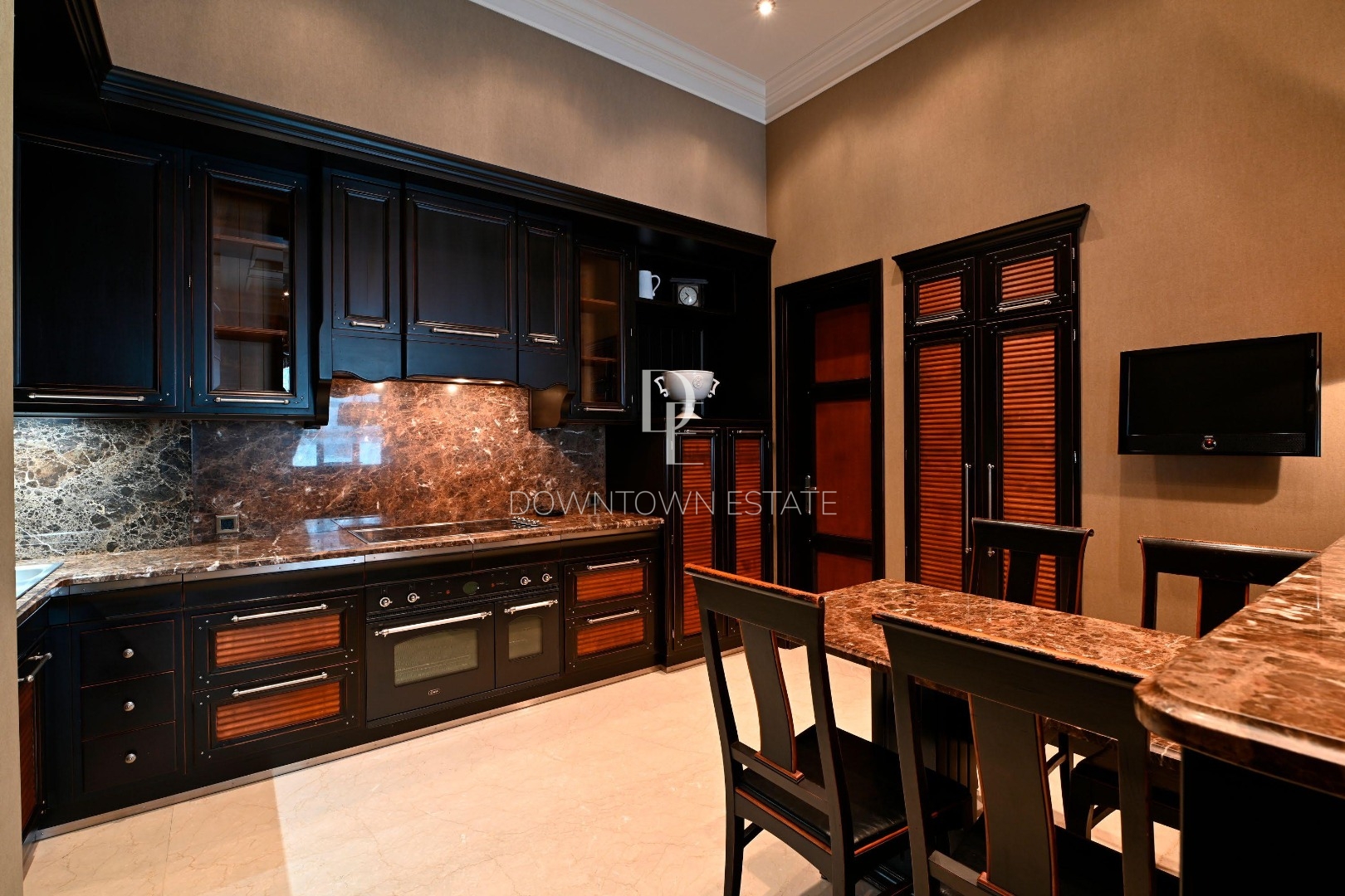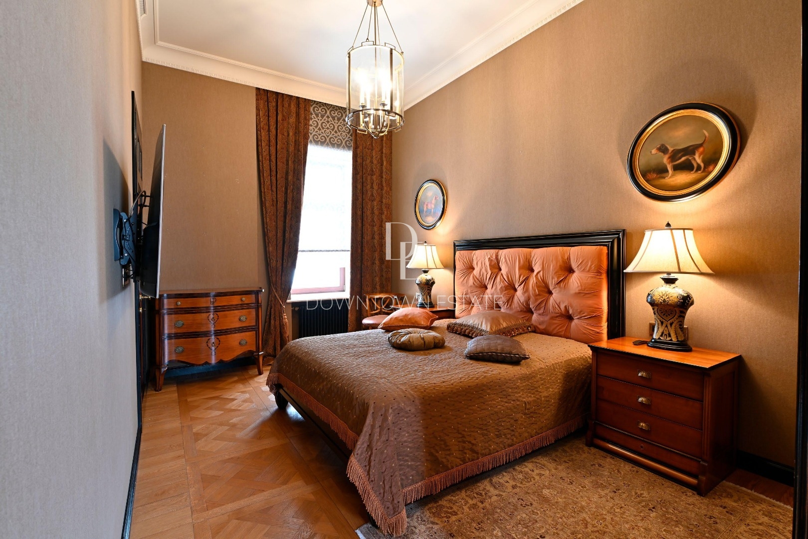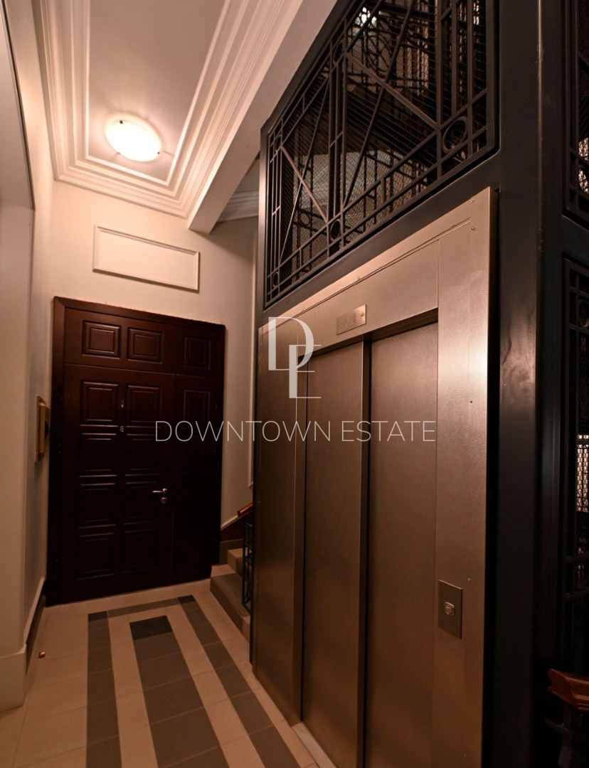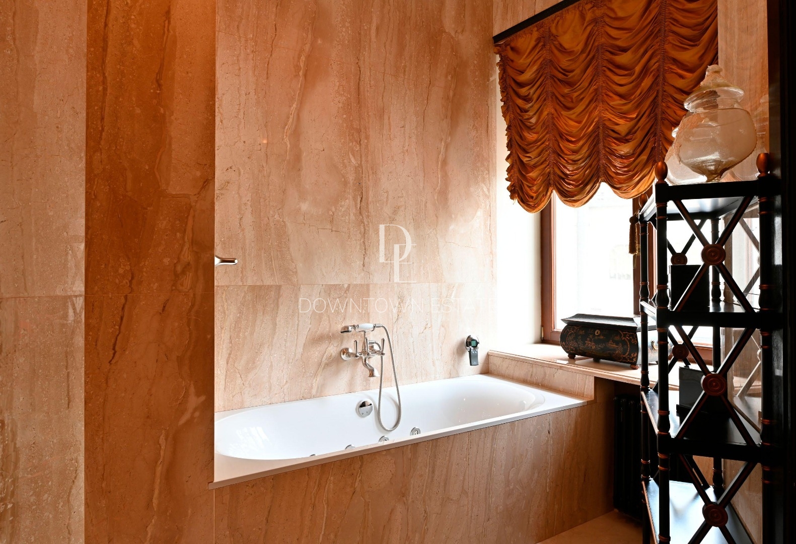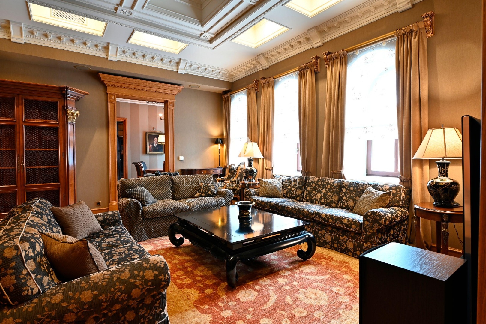 Объект 27389. Предлагается квартира в стиле американской классики с элементами антиквариата в историческом особняке на Малой Молчановке. Планировка: гостиная с декоративным камином, кухня-столовая, мастер-спальня с санузлом и гардеробной, спальня, кабинет, санузел. Высота потолков 4 метра. Виды из окон на Бельгийское посольство и во двор. Инженерные системы: приточно-вытяжная вентиляция, канальное кондиционирование.