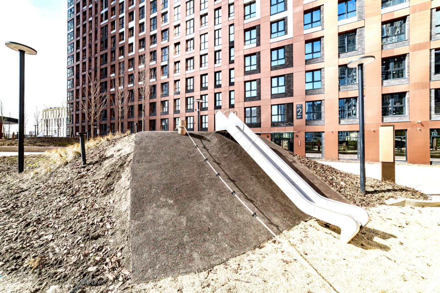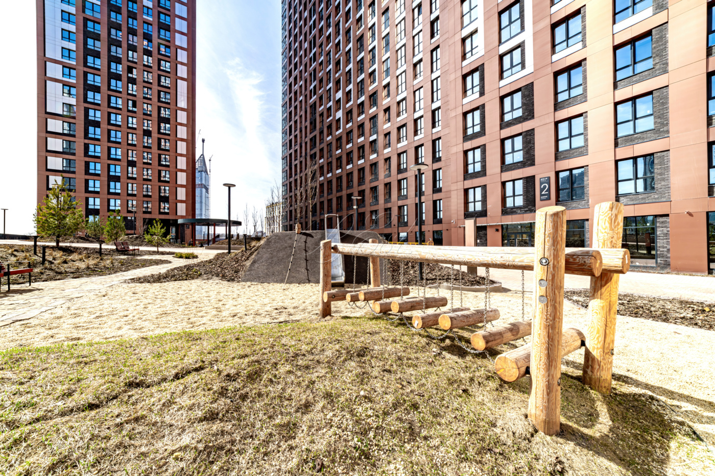 В комплексе реализована концепция "город в городе": разносторонняя внутренняя инфраструктура включает в себя детский сад, школу, подземный паркинг и торговый центр с кинотеатром, благодаря чему жильцы могут получить все необходимые услуги и товары, не покидая собственного двора.