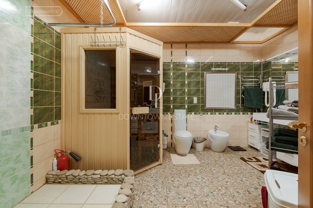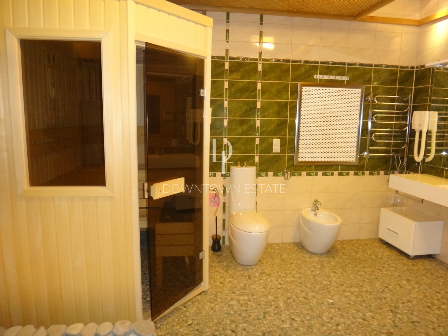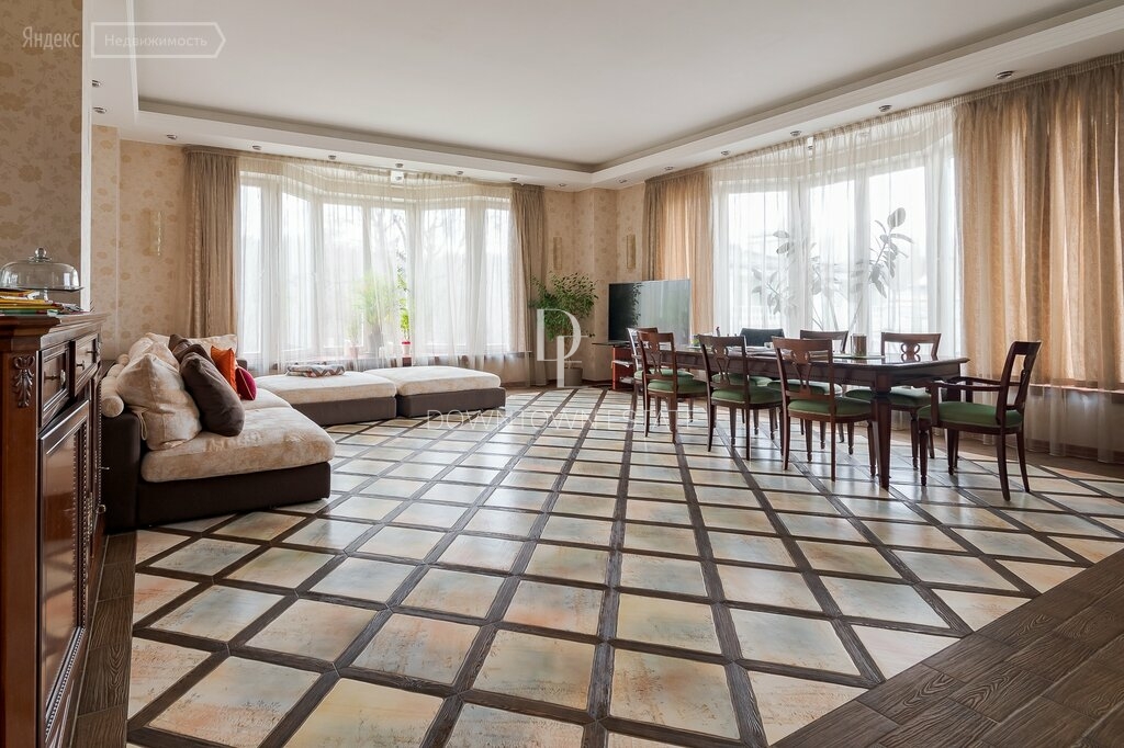 Объект 15656. Предлагается прекрасная квартира в лучшем корпусе элитного жилого комплекса "Покровский Берег". Общая площадь квартиры 451 кв.м (с балконами). Планировка включает в себя: кухню-гостиную с выходом на большую террасу, откуда открывается вид на зеленый ландшафт, две детские комнаты, объединенные аркой (можно разделить и сделать каждую с отдельным входом), две спальни, вторая гостиная с кухней, дровяным камином и спортивным оборудованием, кабинет (может быть использован в качестве третьей спальни) с выходом на вторую террасу, большая проходная гардеробная, два полноценных санузла (один из которых с сауной), гостевой санузел с функцией прачечной. В помещениях выполнен дизайнерский ремонт в современном стиле с использованием дорогостоящих материалов. Квартира меблирована, оборудована кондиционерами, подогревом пола, бойлером, высокоскоростным интернетом, кабельным ТВ. Кухня оснащена всей необходимой высококлассной бытовой техникой.