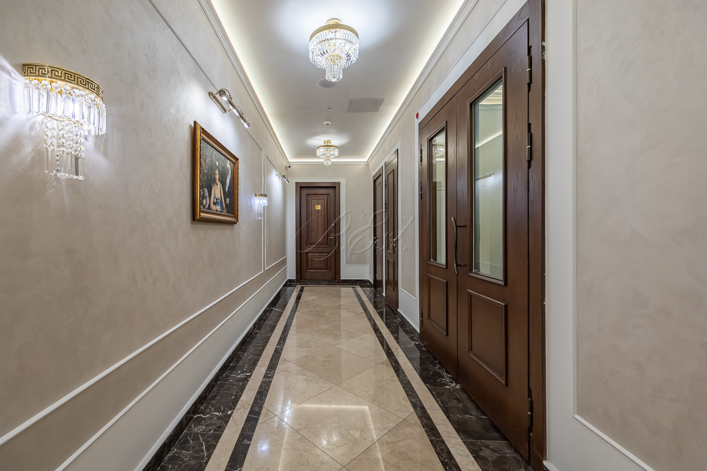 Благоустроенный закрытый двор, круглосуточное видеонаблюдение, консьерж-сервис, своя управляющая компания, трехуровневый подземный паркинг.