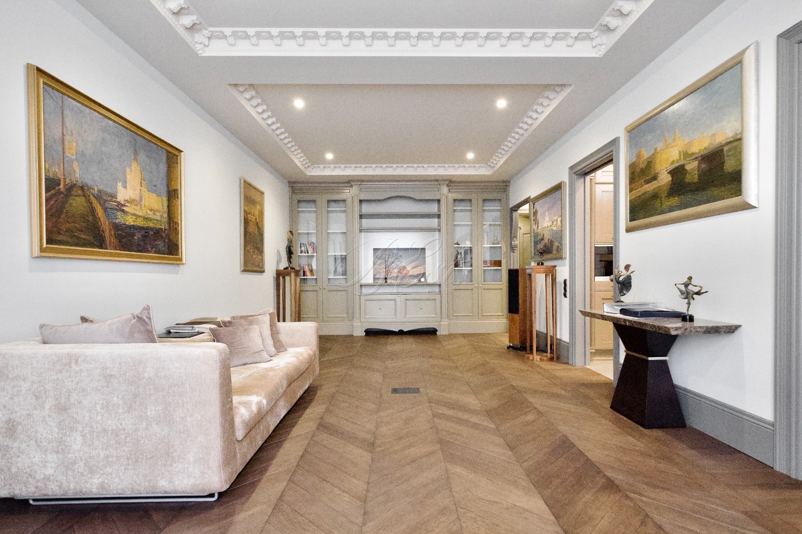 Объект 30481. Предлагается трехкомнатная квартира в клубном доме премиум-класса на Патриарших. Функциональная планировка включает в себя уютную гостиную, кухню с бытовой техникой Miele, мастер-спальню с ванной комнатой и гардеробной, кабинет/дополнительную спальню, вместительный холл со встроенными шкафами и гостевой санузел. Квартира полностью укомплектована мебелью и техникой от премиальных брендов. Имеется одно машиноместо в подземном паркинге (не входит в указанную стоимость).