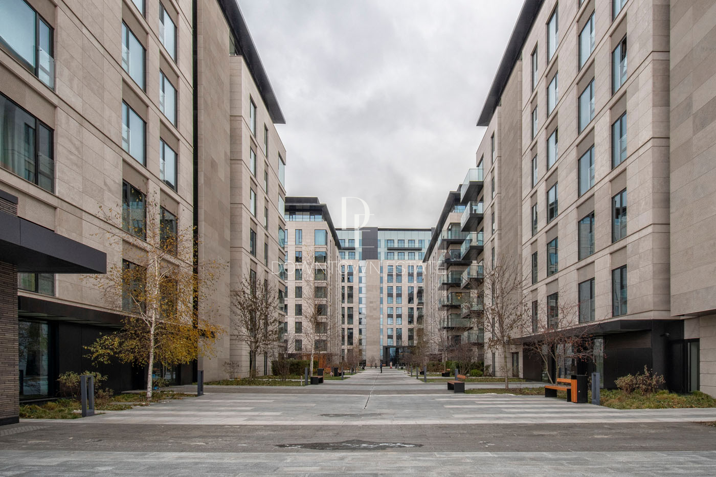 На благоустроенной закрытой территории ЖК есть вишневый сад с беседками и фонтанами, зеленые дворы с террасами, поле для игры в городки, спортивная площадка, уличная шахматная доска, большая и малая детские площадки. Предусмотрен прямой выход в парк. К услугам жителей профессиональная управляющая компания и круглосуточный консъерж-сервис (организация уборки, химчистки, доставки продуктов и пр.), World Class Luxury с большим бассейном и SPA, английский детский сад, ресторан, спортивно-развивающий клуб, химчистка, аптека.