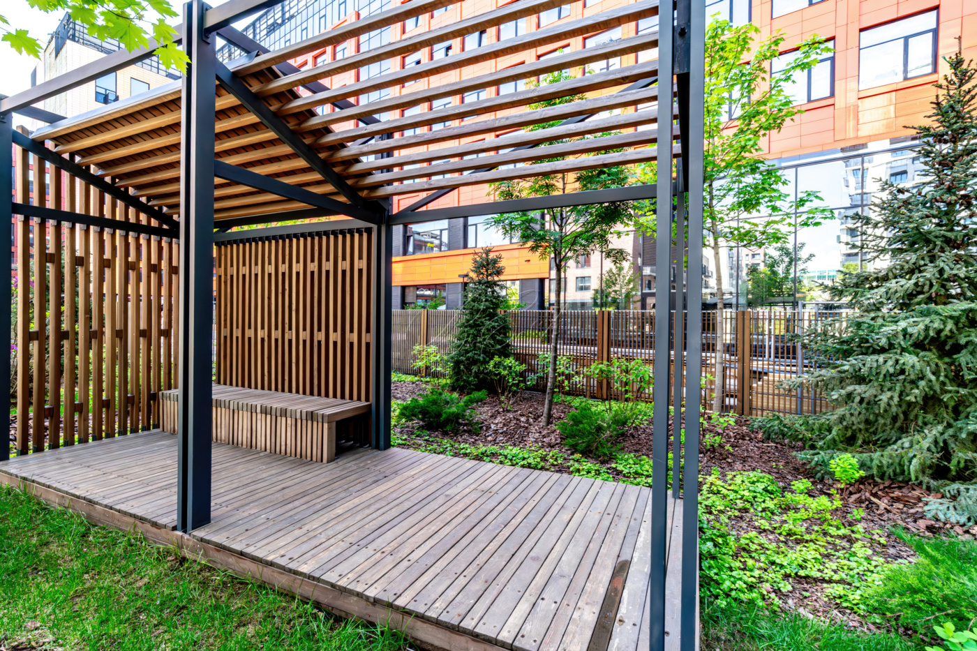 Внутреняя инфаструктура комплекса: частный детский сад, фитнес-центр (бесплатный для жильцов), детская площадка Kid's Lab, двор-парк, трехуровневый подземный паркинг, где имеются 2 машиноместа и келлер (не входят в указанную стоимость).