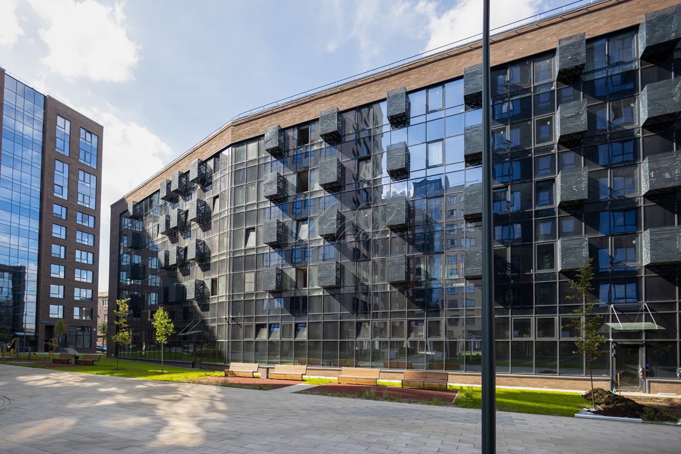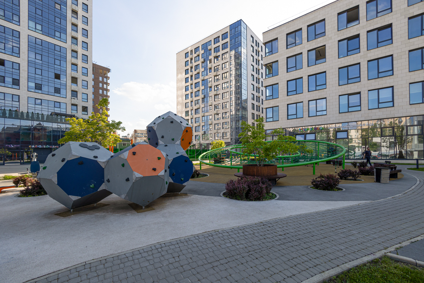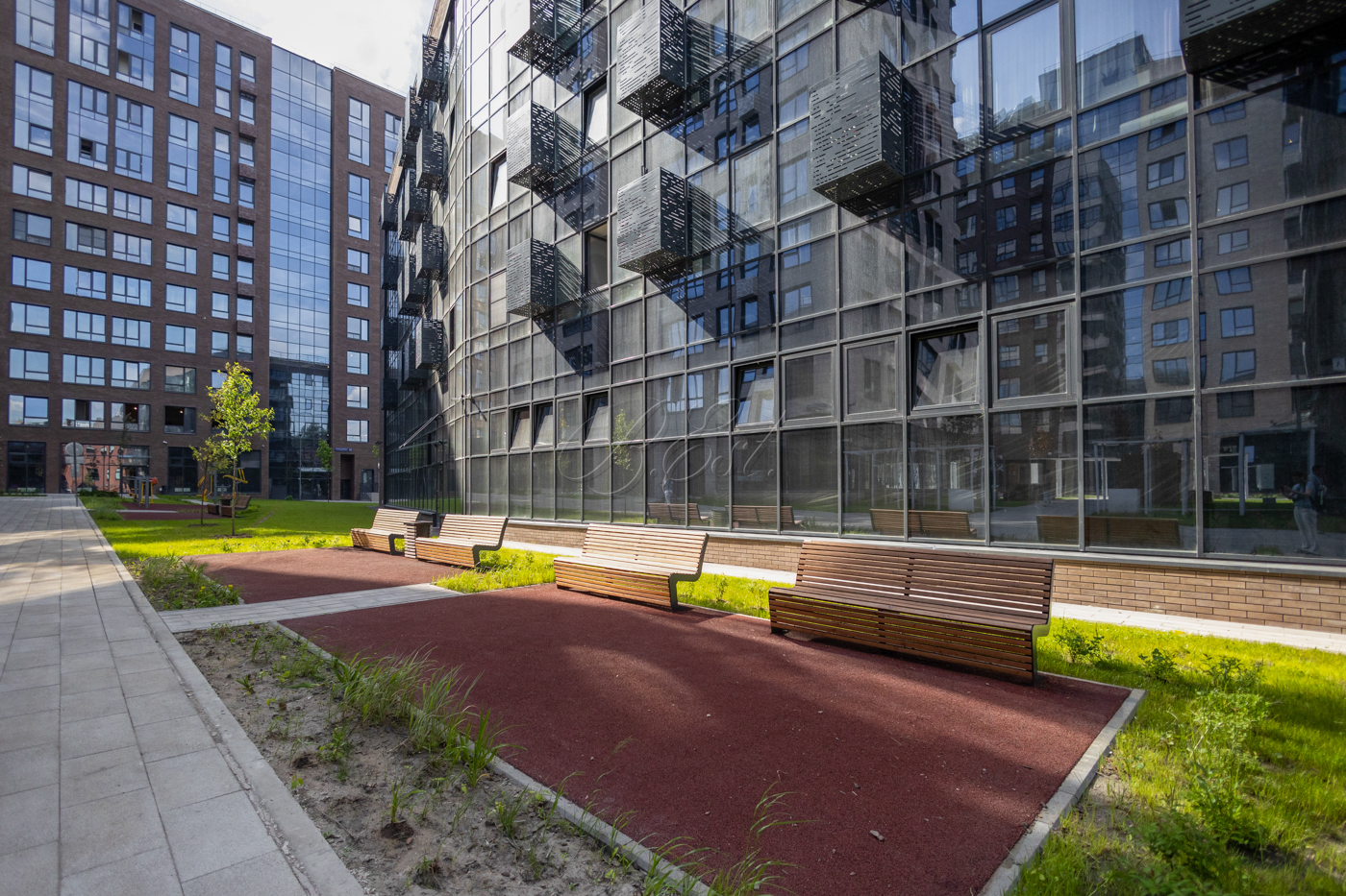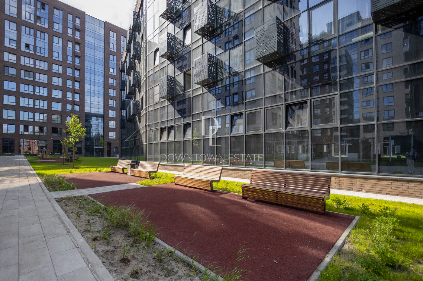 На придомовой территории "Резиденции Архитекторов" расположены арт-объекты, детские площадки, свой парк и прогулочный бульвар. Подземный паркинг. Развитая инфраструктура в пешей доступности, в том числе парки, скверы.