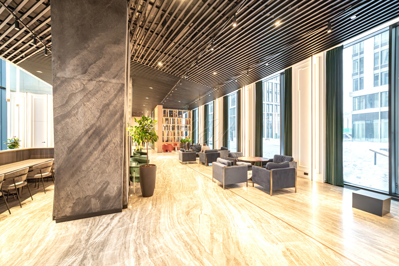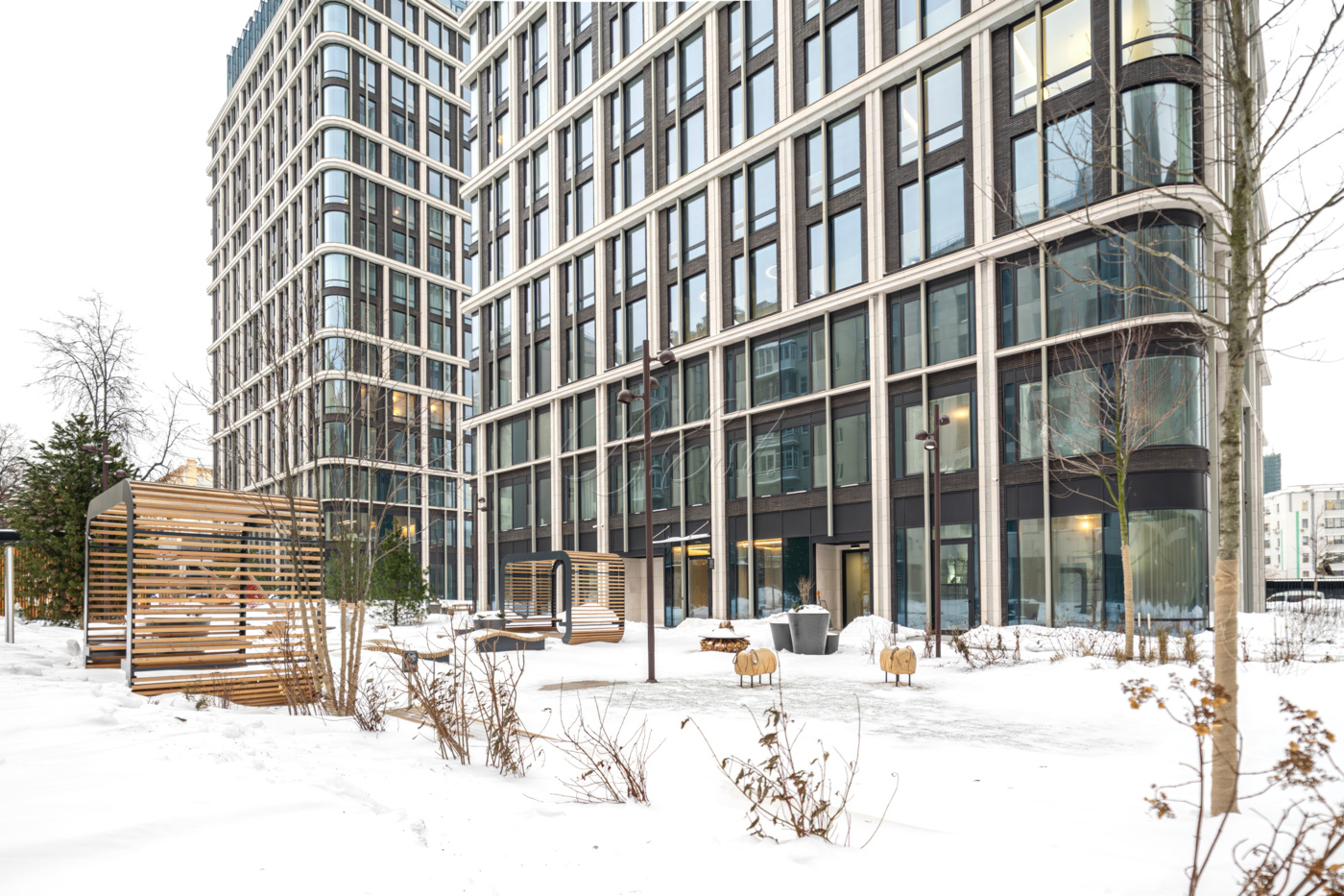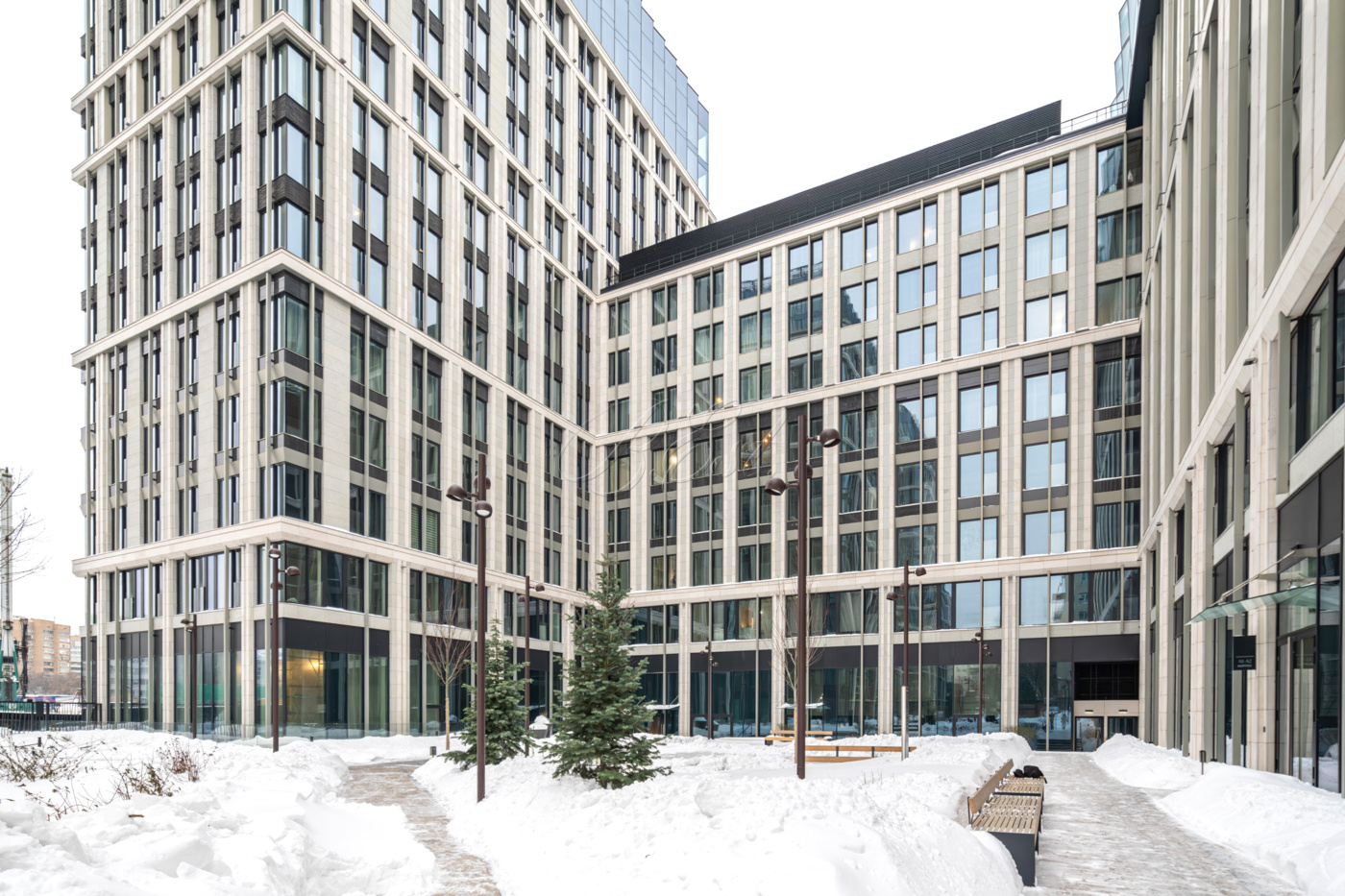 Территория ЖК огорожена, действует пропускной режим. В комплексе имеется охраняемый подземный паркинг, просторные презентабельные лобби с консьерж-сервисом, переговорными и лапомойкой, развитая инфраструктура с концепцией "город в городе": множество коммерческих площадей на первых этажах и все необходимое для жизни - в пешей доступности!