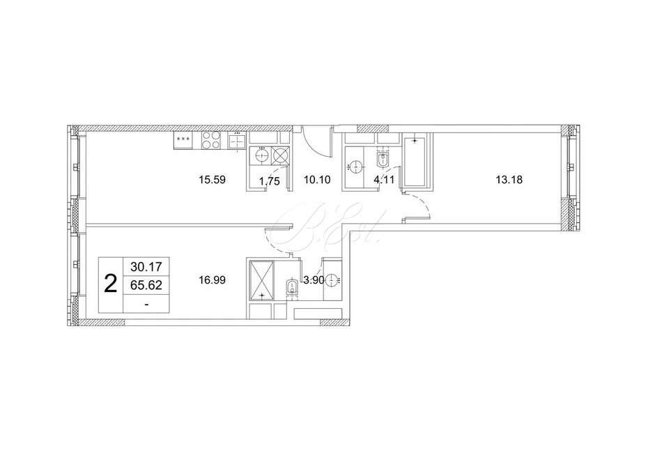 Продается 2-х комн. новостройка, 65.62 кв.м., 11/16 эт